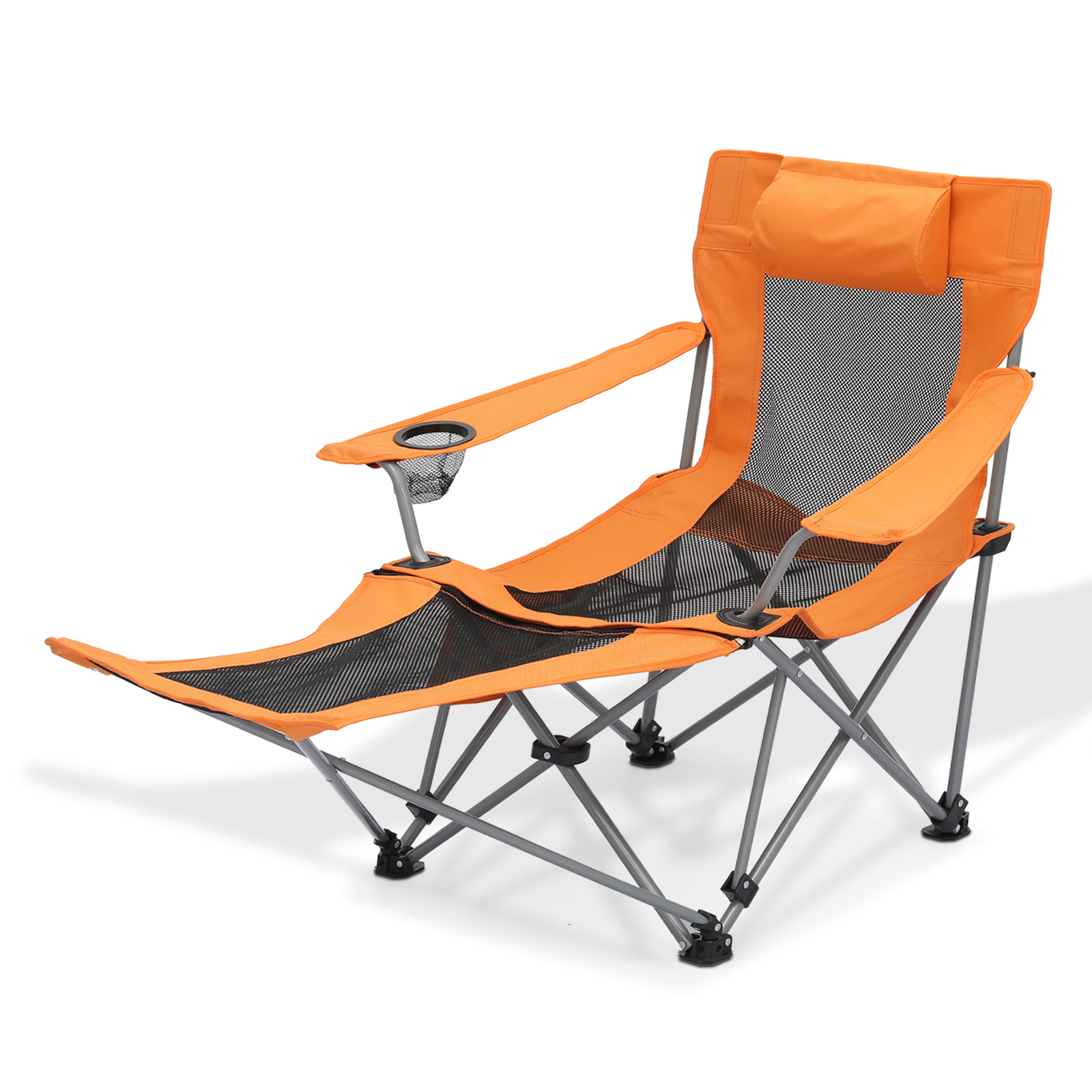 Magshion Folding Camping Chair with Removable Footrest, Portable Patio Lawn Bench Seat Adults with Cup Holder, for Outdoor with Carry Bag, Orange