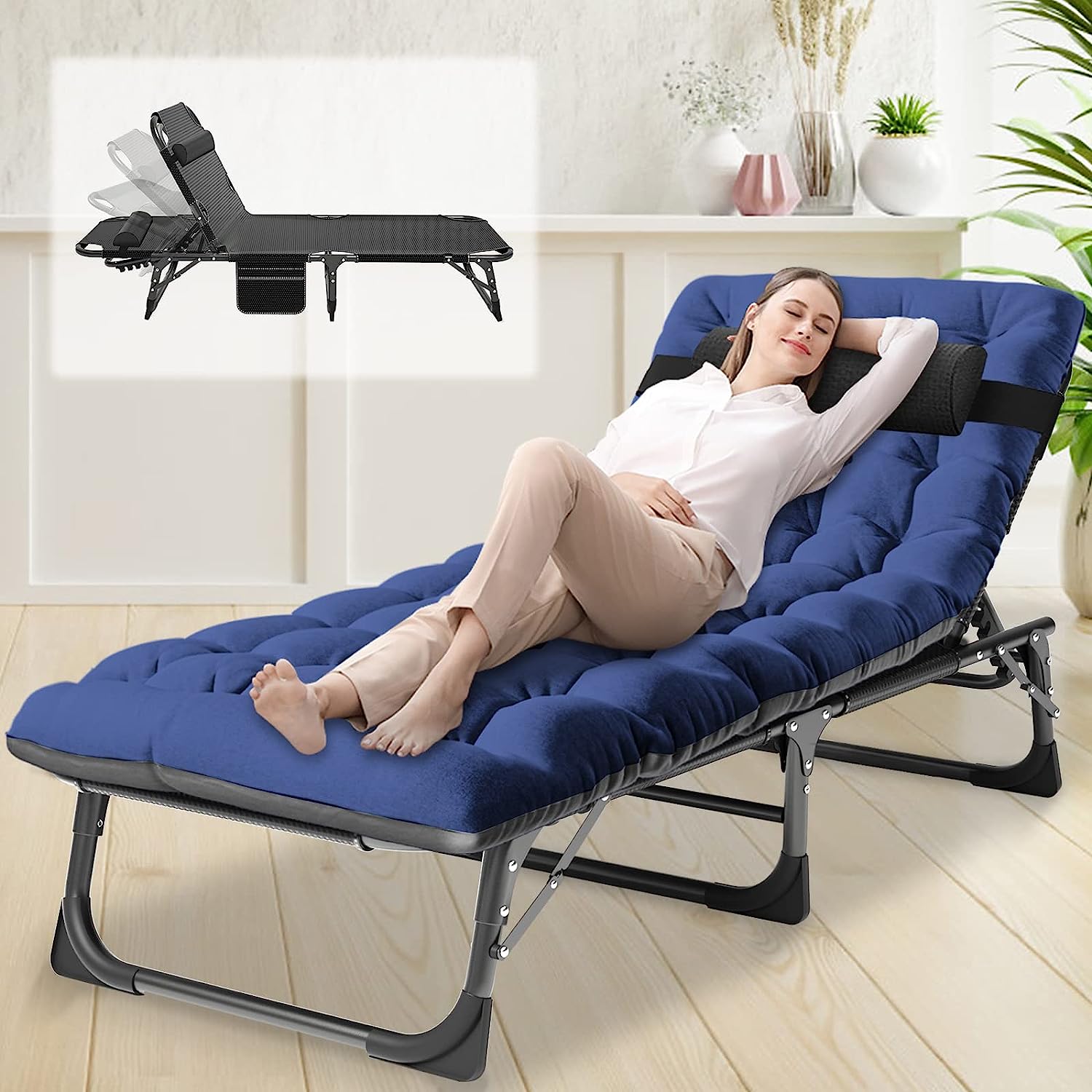 Slsy 4-Fold Folding Camping Cot with 2 Sided Mattress & Pillow, Adjustable 5-Position Folding Lounge Chair, Folding Sleeping Cots