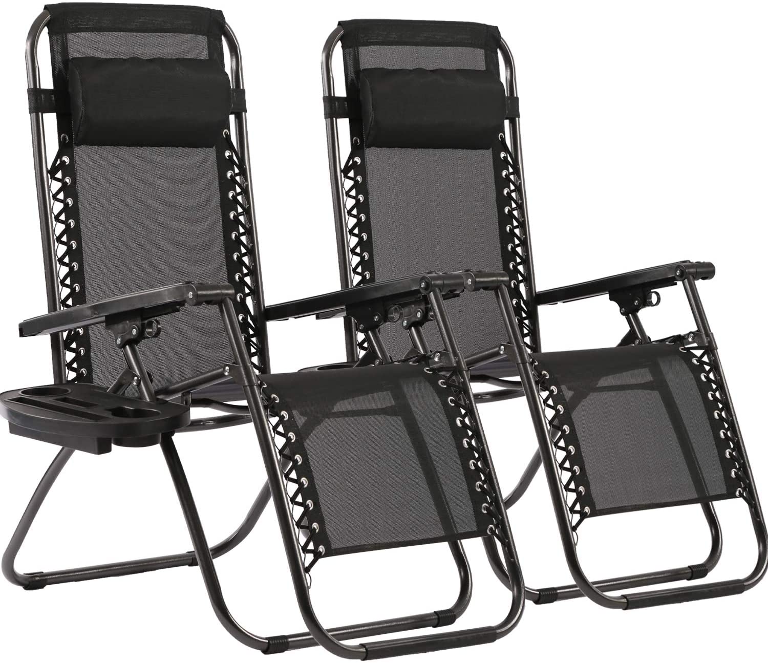 BestMassage 2 Pack Utility Tray Steel Zero-Gravity Chair - Black and Gray