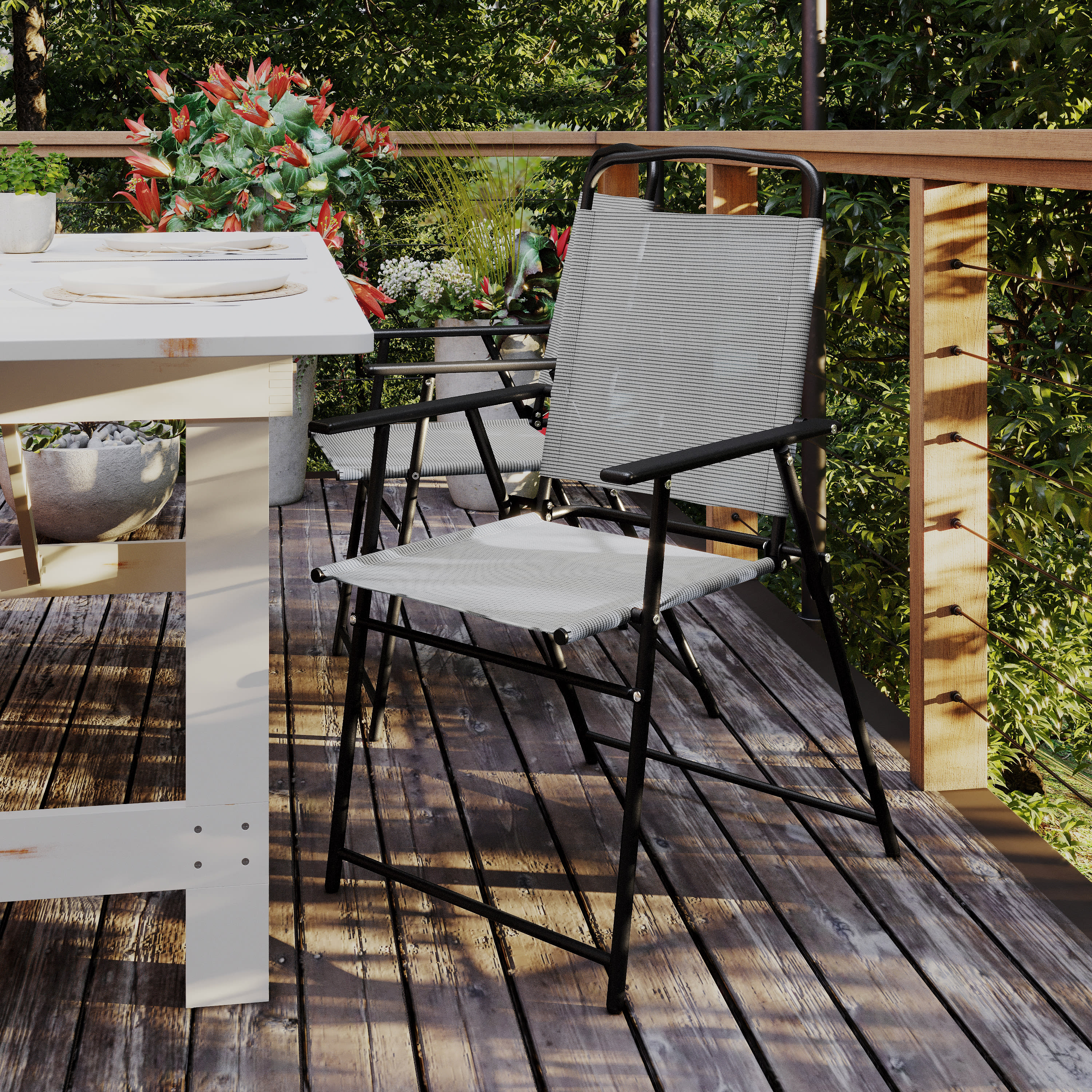 BizChair Set of 2 Folding Patio Sling Chairs, Outdoor Textilene Lawn Chairs with Armrests in Gray