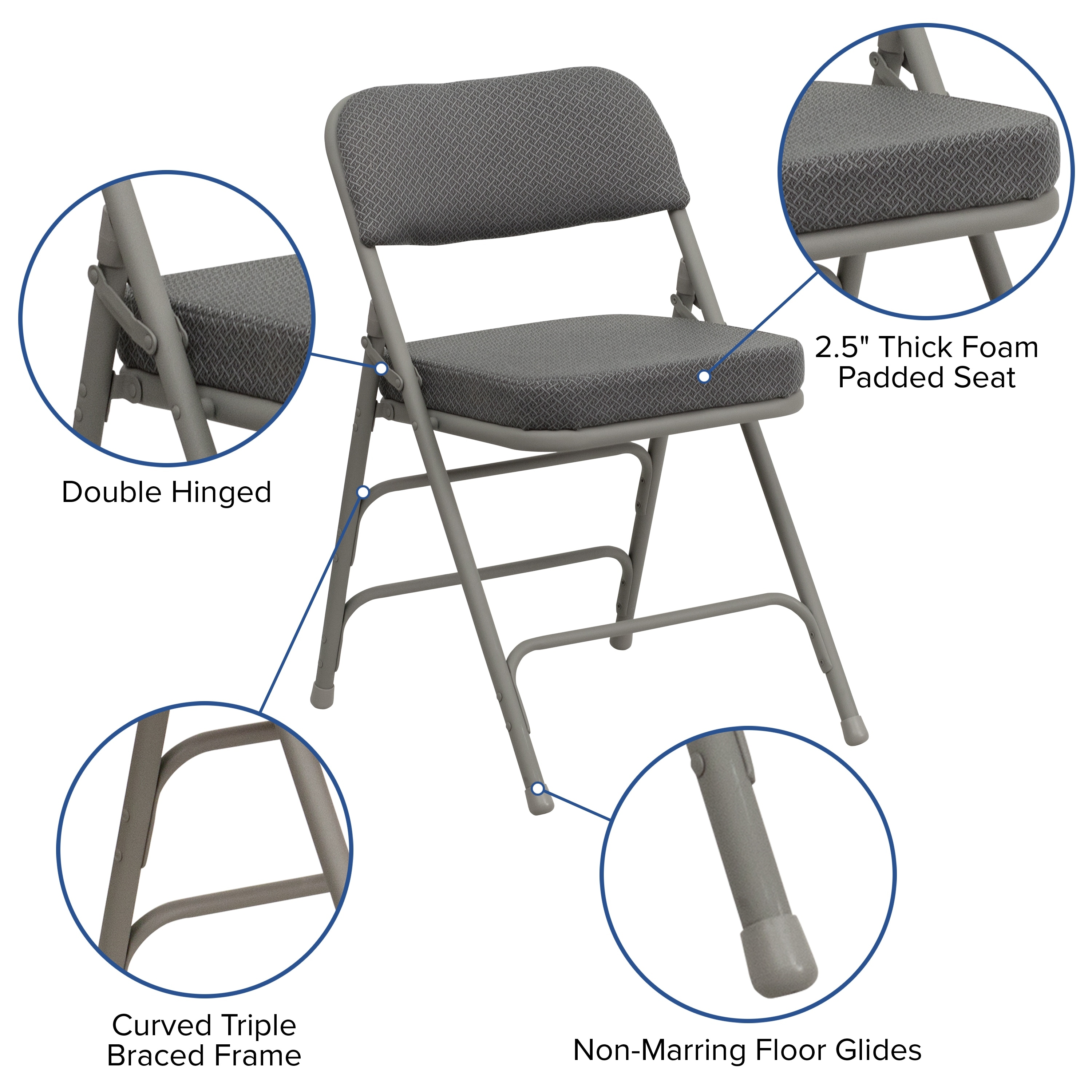 Flash Furniture 2 Pack Curved Triple Braced & Double Hinged Upholstered Metal Folding Chair Grey Fabric/ Grey Frame