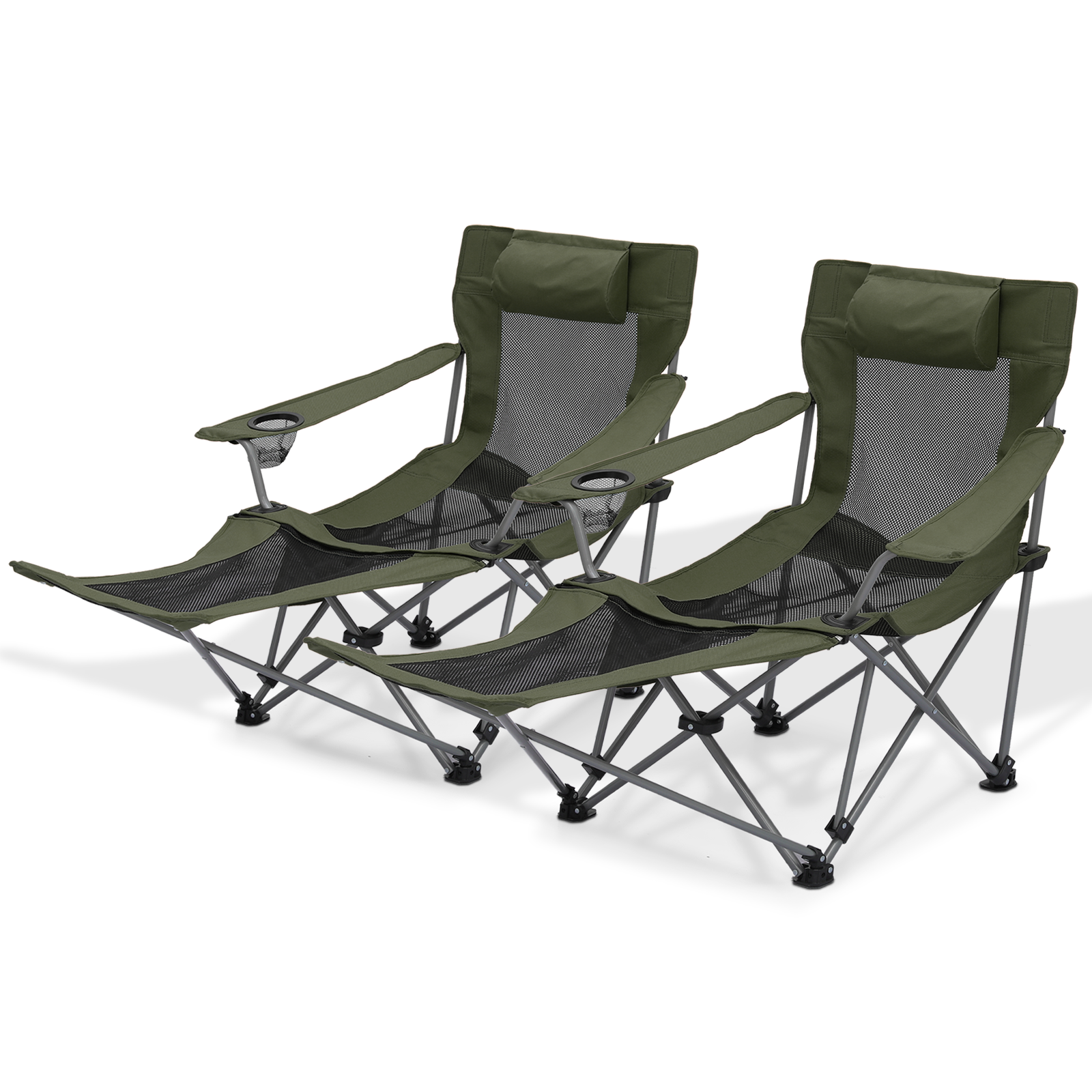 Magshion 2 Pieces Folding Camping Chairs Beach Chair, Portable Lounge Travel Outdoor Seat with Cup Holder & Carry Bag, Dark Green