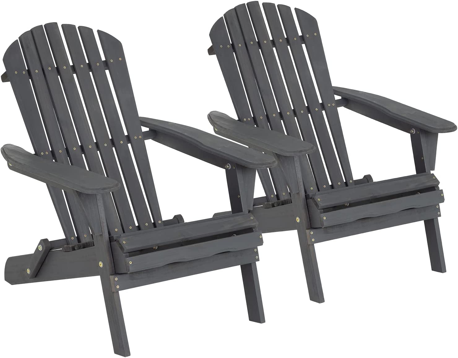 FDW Folding Adirondack Chair Weather Resistant Lawn Chair Pinewood Patio Chairs Wood Porch Chair with Wood Texture for Patio Garden Lawn Backyard Deck Pool Beach Firepit,Grey 2 pcs