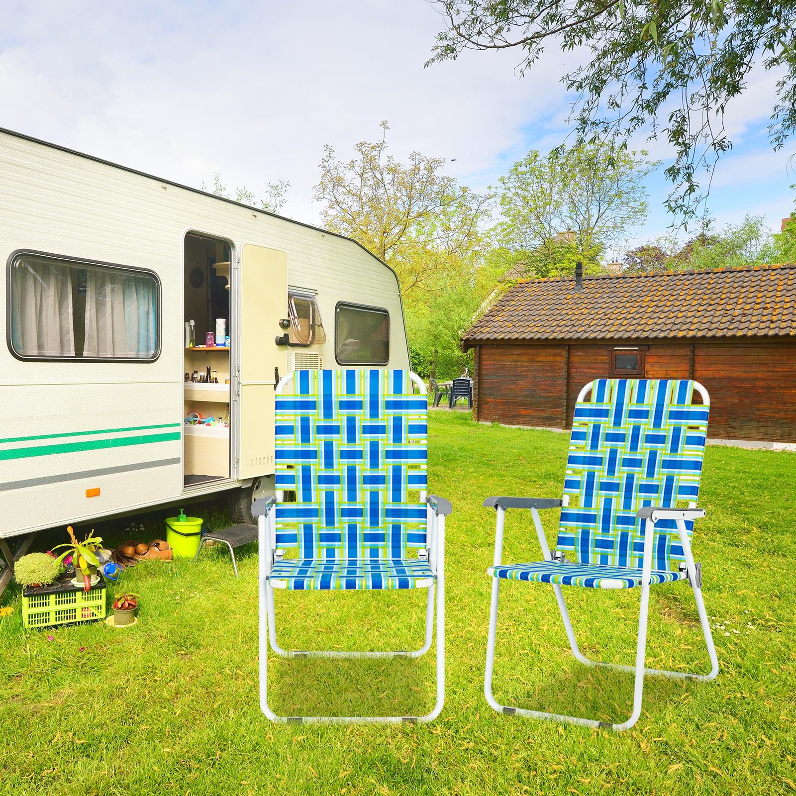 SalonMore Patio Folding Web Lawn Chair Set Portable Camping Chair(Blue)