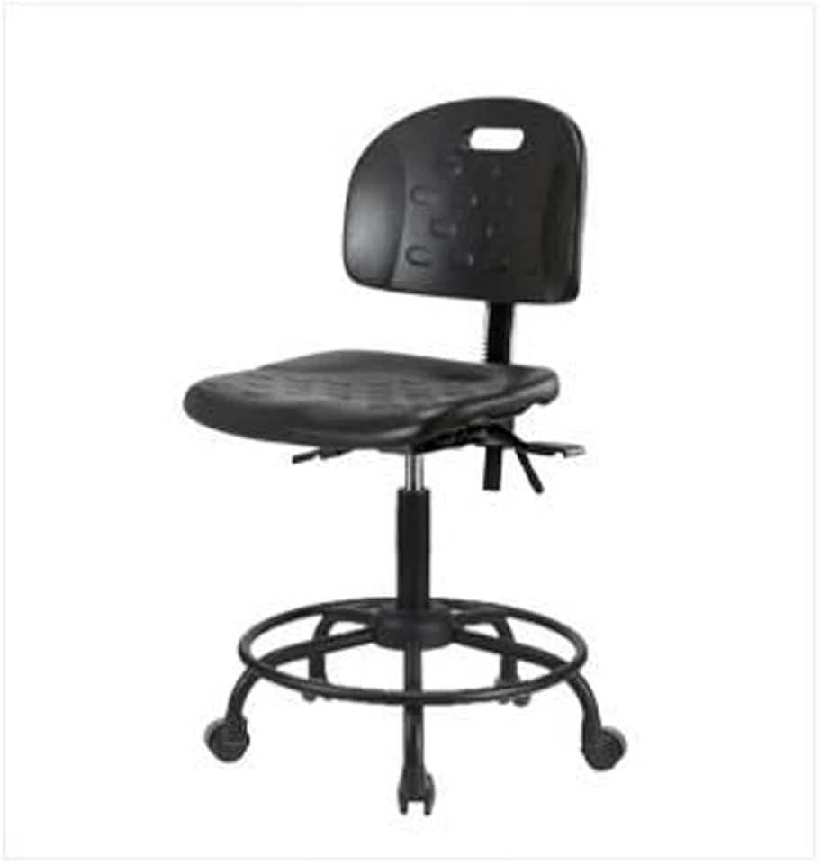 Thomas ECOM HPMBCH-RG-T0-A1-CF-RC Industrial Polyurethane Medium Bench Height Chair with Black Nylon Base Without Tilt, Adjustable Arms, Chrome Foot Ring, Casters