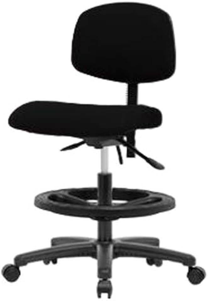 FMBCH-RG-T1-A1-CF-RG-F42 Fabric Medium Bench Height Chair with Black Nylon Base, Chrome Foot Ring, with Tilt, Adjustable Arms, Glides, Black