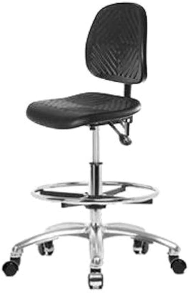 Thomas ECOM ESD-PMBCH-CR-T0-A1-CF-EC ESD/Clean Room Polyurethane Medium Bench Height Chair with Chrome Base, Chrome Foot Ring, Adjustable Arms, ESD Casters Without Tilt