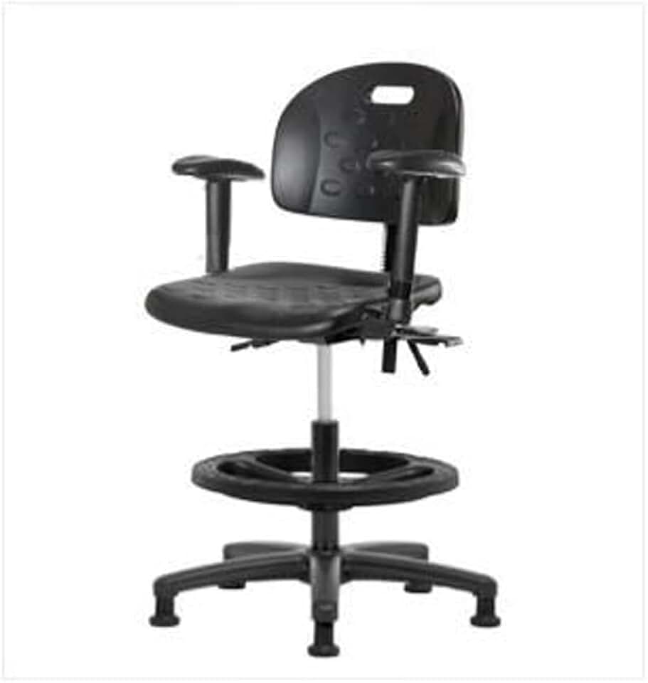 Thomas ECOM HPMBCH-RG-T1-A1-BF-RG Industrial Polyurethane Medium Bench Height Chair with Black Nylon Base and Tilt, Adjustable Arms, Black Foot Ring, Glides