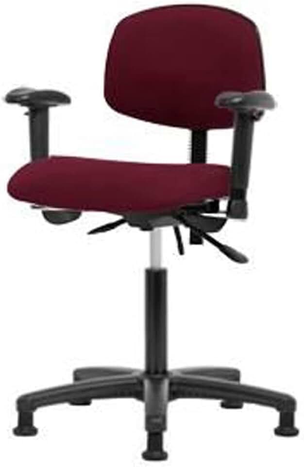 Thomas ECOM VMBCH-CR-T1-A1-NF-RG-c8569 Burgundy Vinyl Medium Bench Height Chair with Chrome Base, Tilt and Without Foot Ring, Adjustable Arm Glides