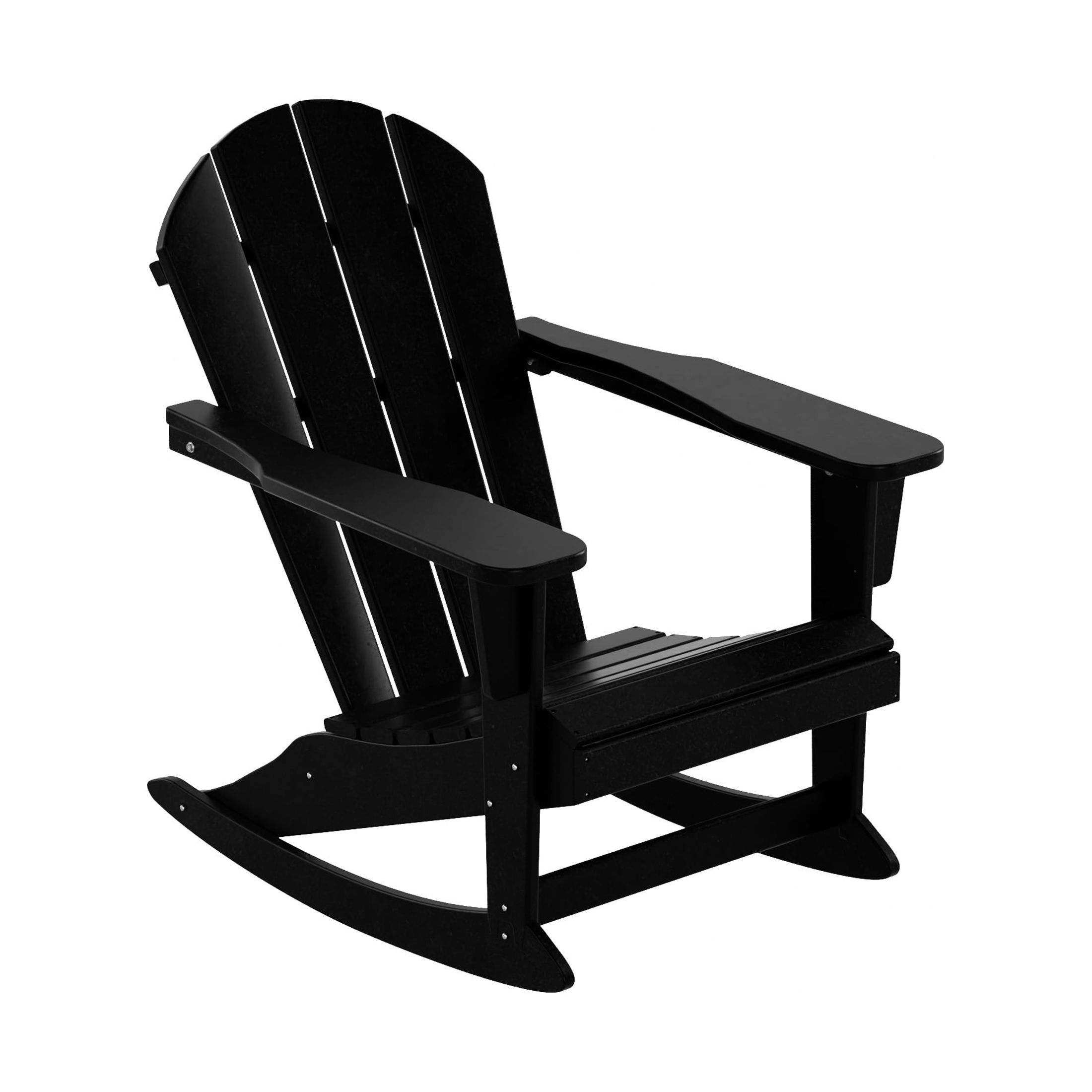 Westintrends Malibu Black Rocking Chair Outdoor, All Weather Resistant Poly Lumber Classic Porch Rocker Chair, 350 lbs Support Patio Lawn Plastic Adirondack Chair