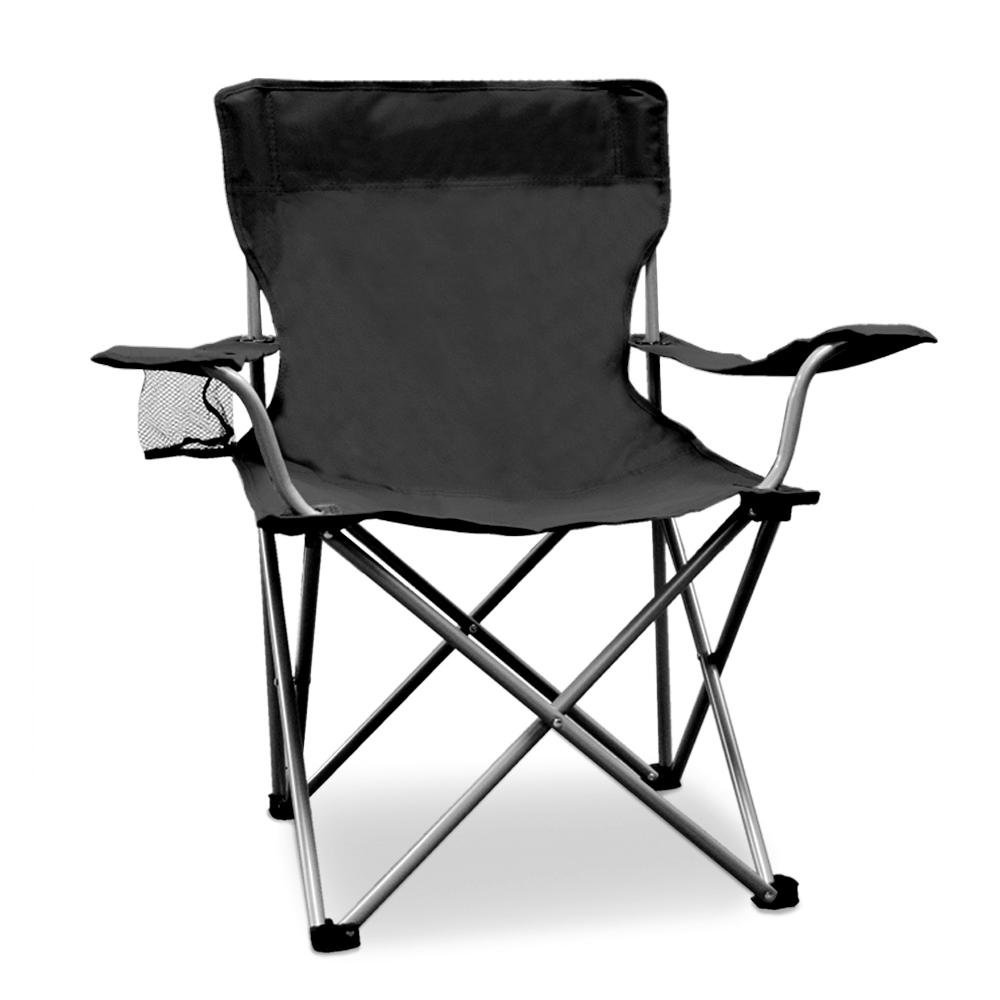 The Weather Station Steel Folding Tailgate Chair with Mesh Cup Holder, Black