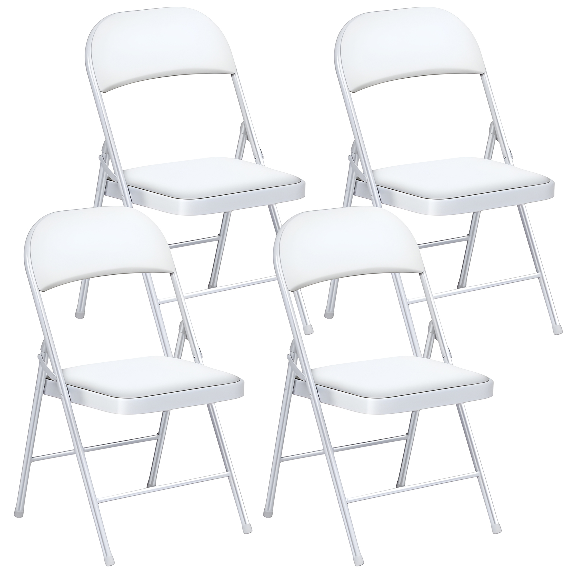 Vebreda Folding Chair (4 Pack) Vinyl Padded Seat Metal Frame Home Office, White