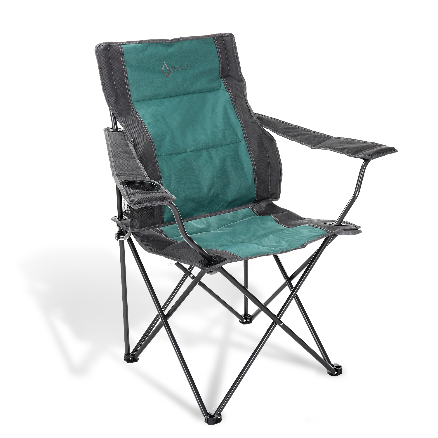 ARROWHEAD OUTDOOR Portable Folding Camping Quad Chair w/Lumbar Back Support, Cup Holder | Heavy-Duty, Oversize, Supports up to 300lbs | Includes Bag | USA-Based Support (Green & Gray)