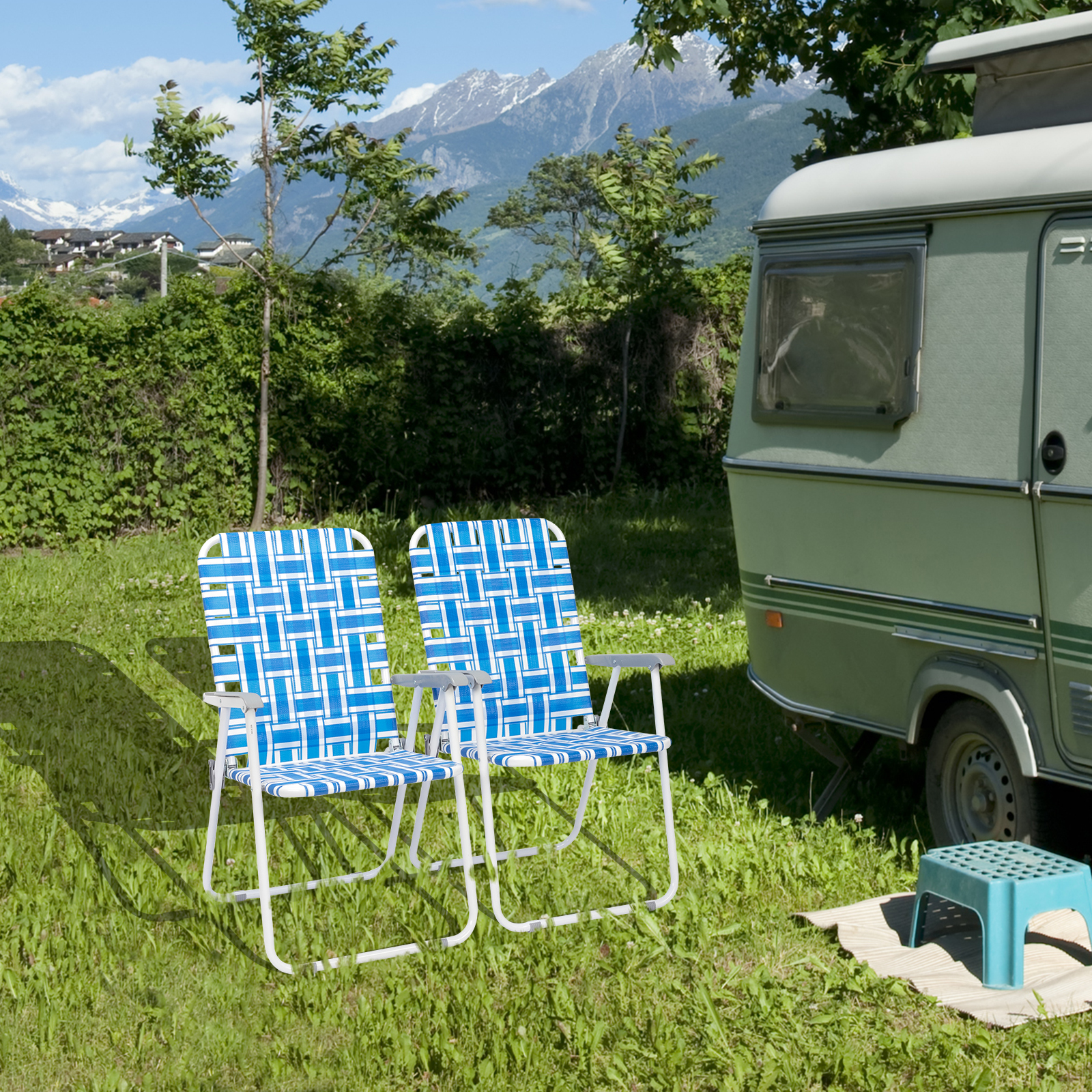 Ktaxon Patio Folding Web Lawn Chair Set, 2 Pack Outdoor Beach Chair Portable Camping Chair(Blue)