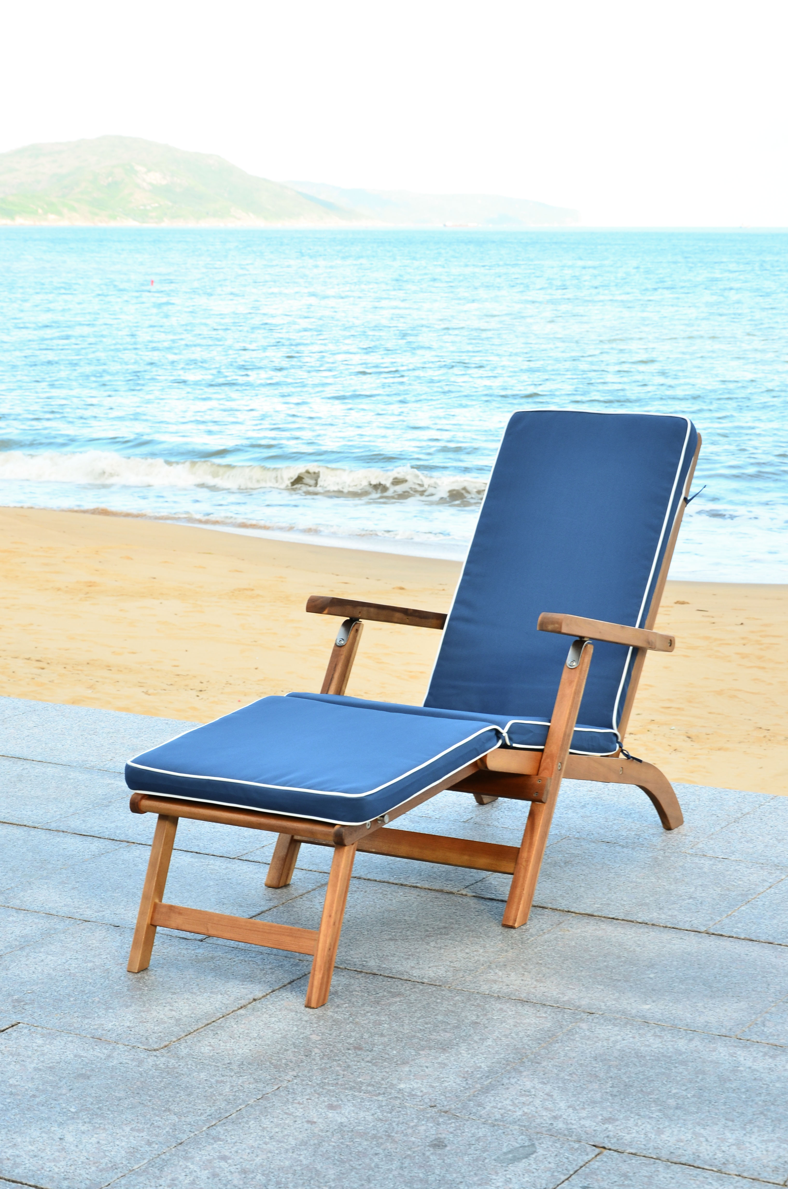 SAFAVIEH Outdoor Collection Palmdale Lounge Chair Natural/Navy