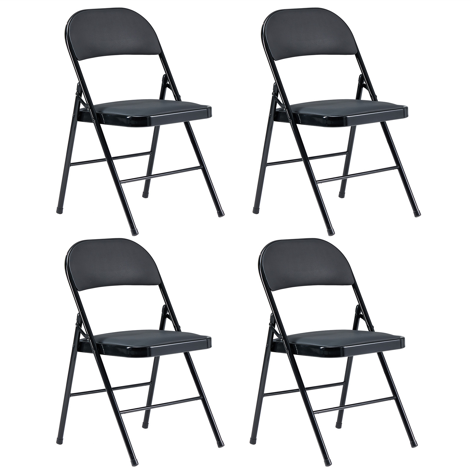 DFITO Set of 4 Folding Chairs Fabric Upholstered Padded Seat Metal Frame Home Office,Black