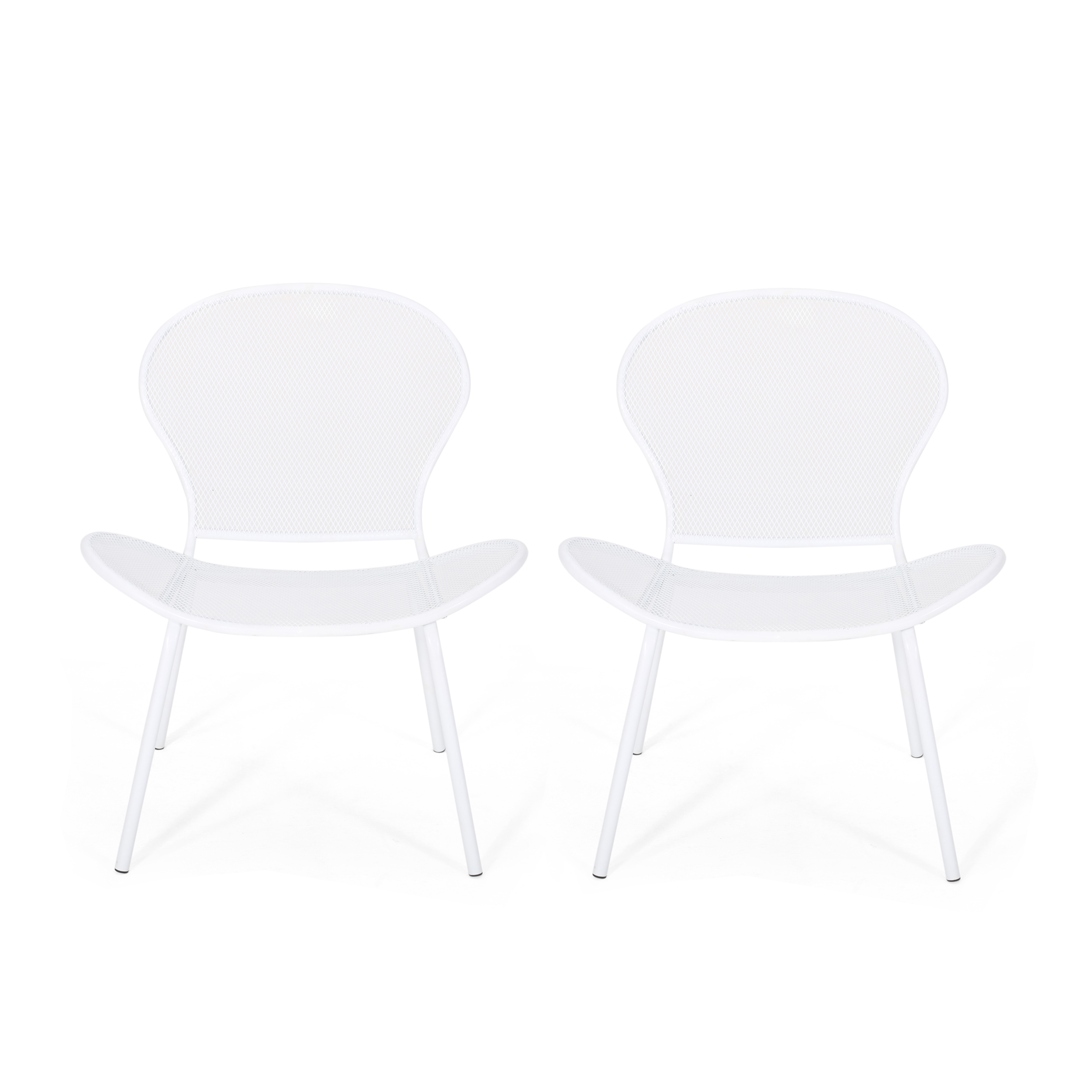 Noble House Kreighton Modern Outdoor Iron Club Chair, Set of 2, Matte White