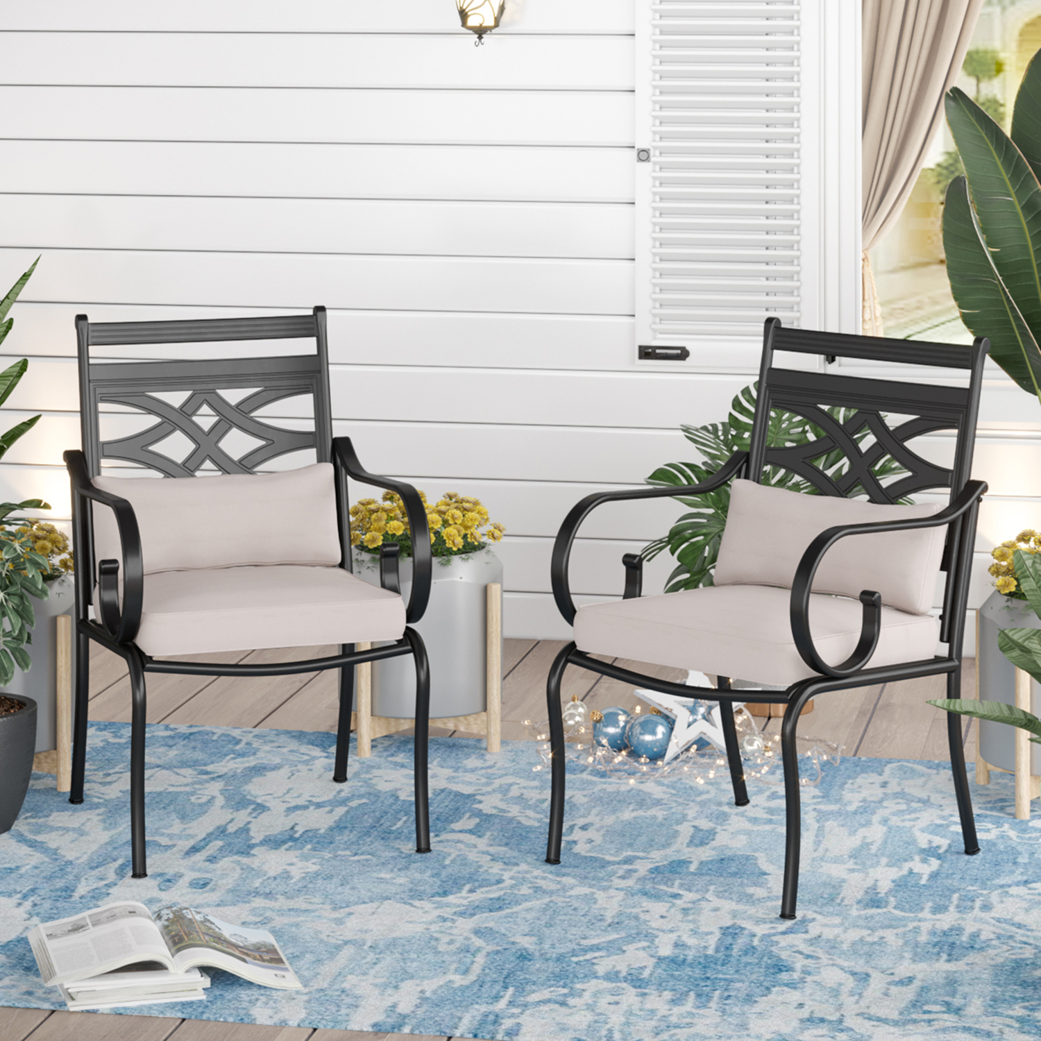 Sophia&William Steel Patio Dining Chairs Set of 2 with Beige Cushion and Pillow