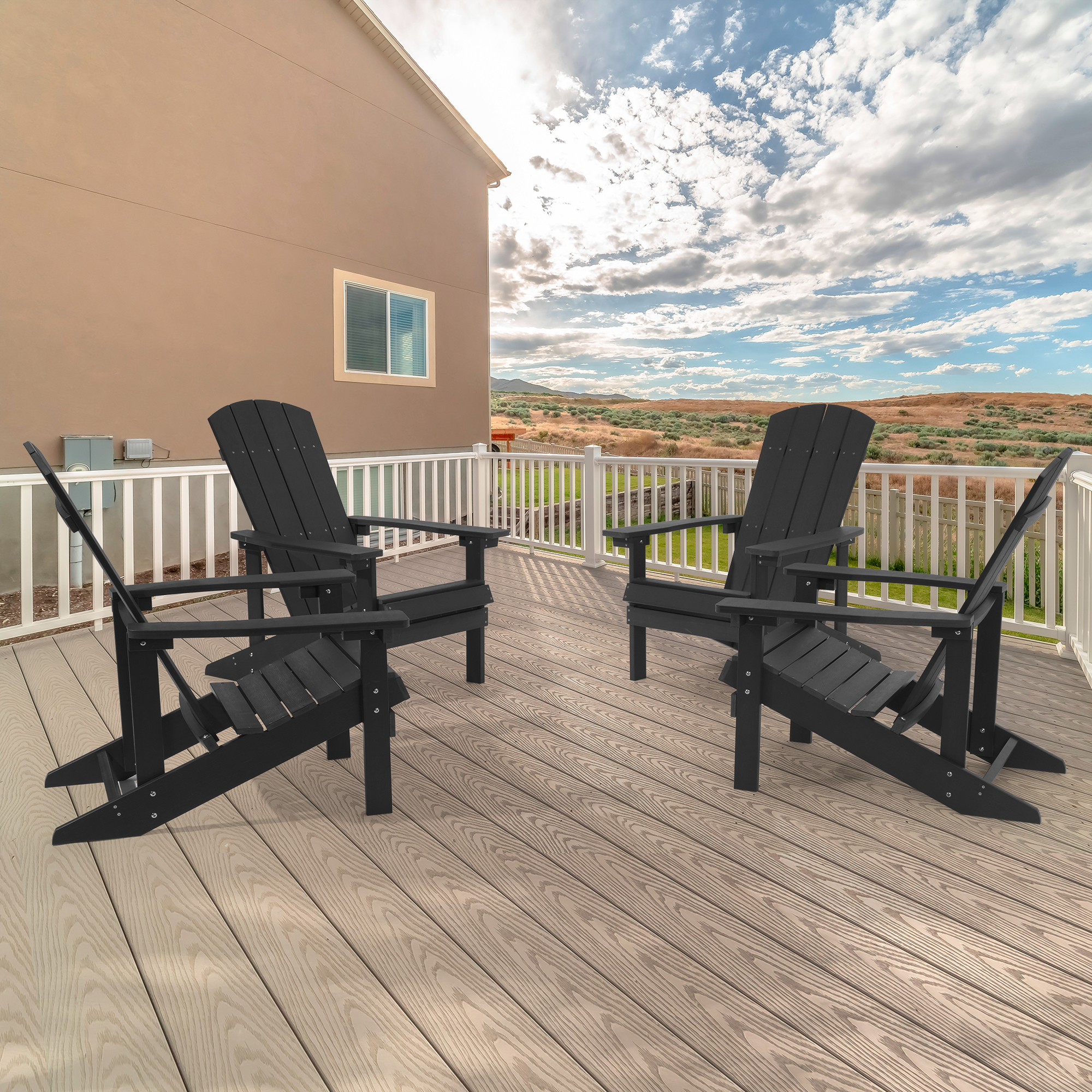 Sonerlic 4 Pack Outdoor HIPS Adirondack Fire Pit Chair for Patio, Deck and Garden,Black