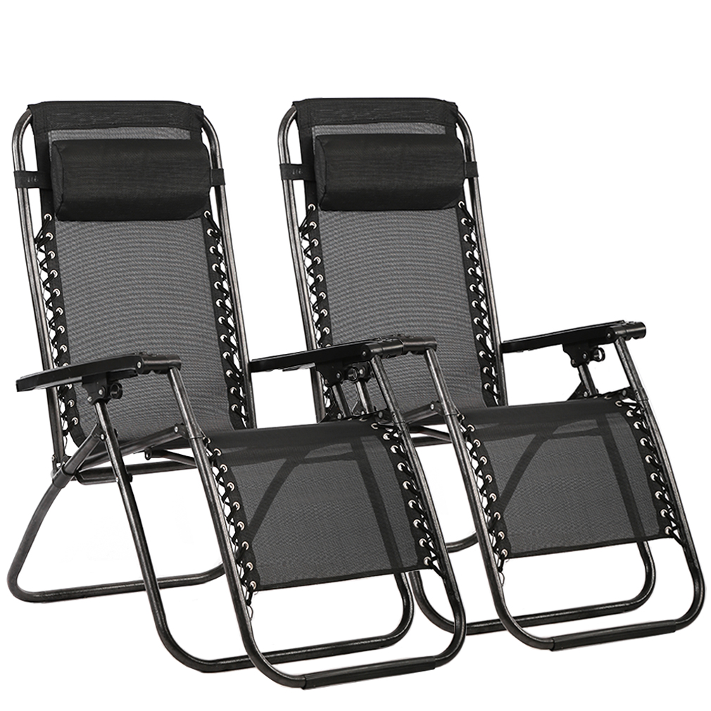 Outdoor Zero Gravity Chairs with Adjustable Pillow, 2 Pack, Black