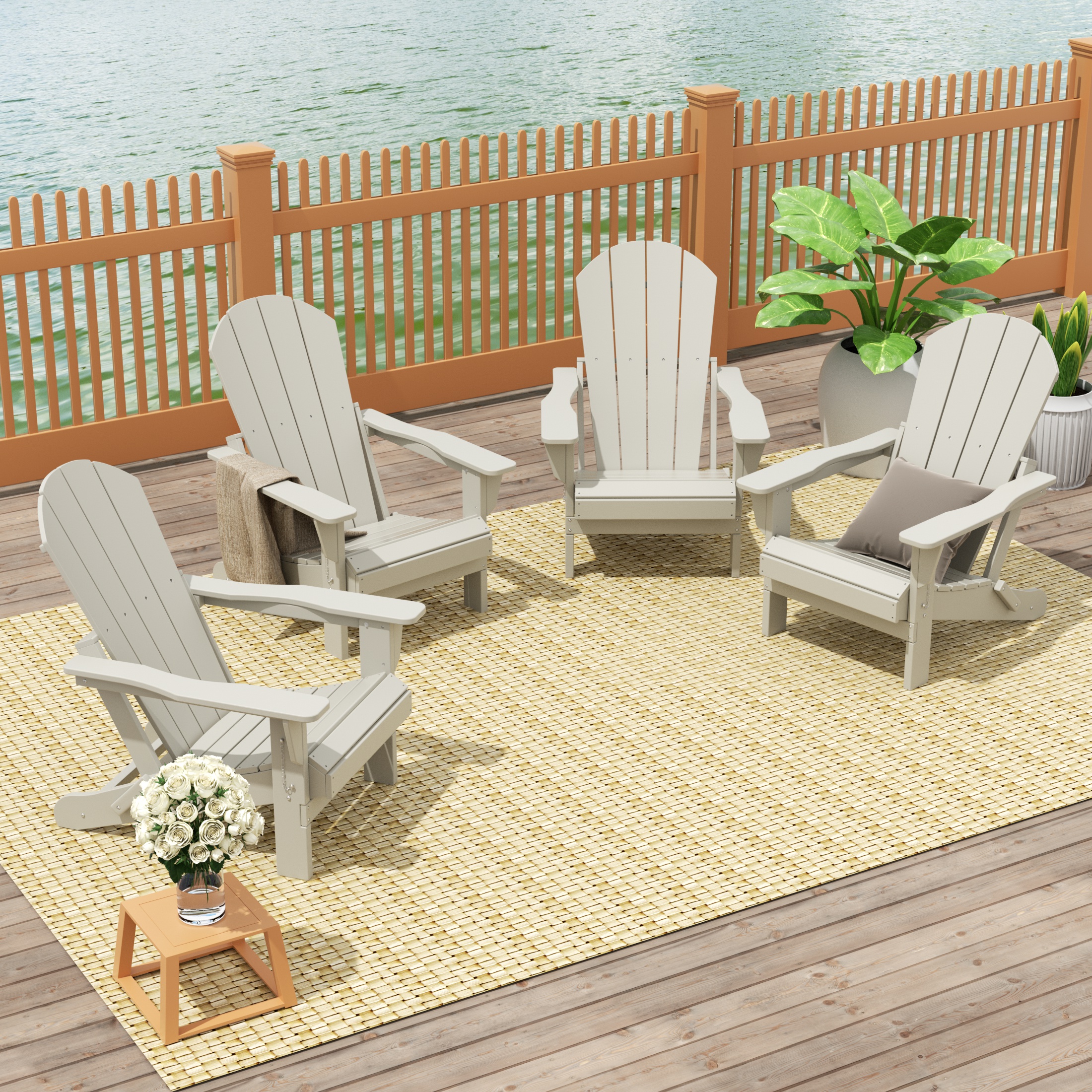 Costaelm Paradise Classic Adirondack Folding Adjustable Chair Outdoor Patio, HDPE, Weather Resistant, (Set of 4), Sand