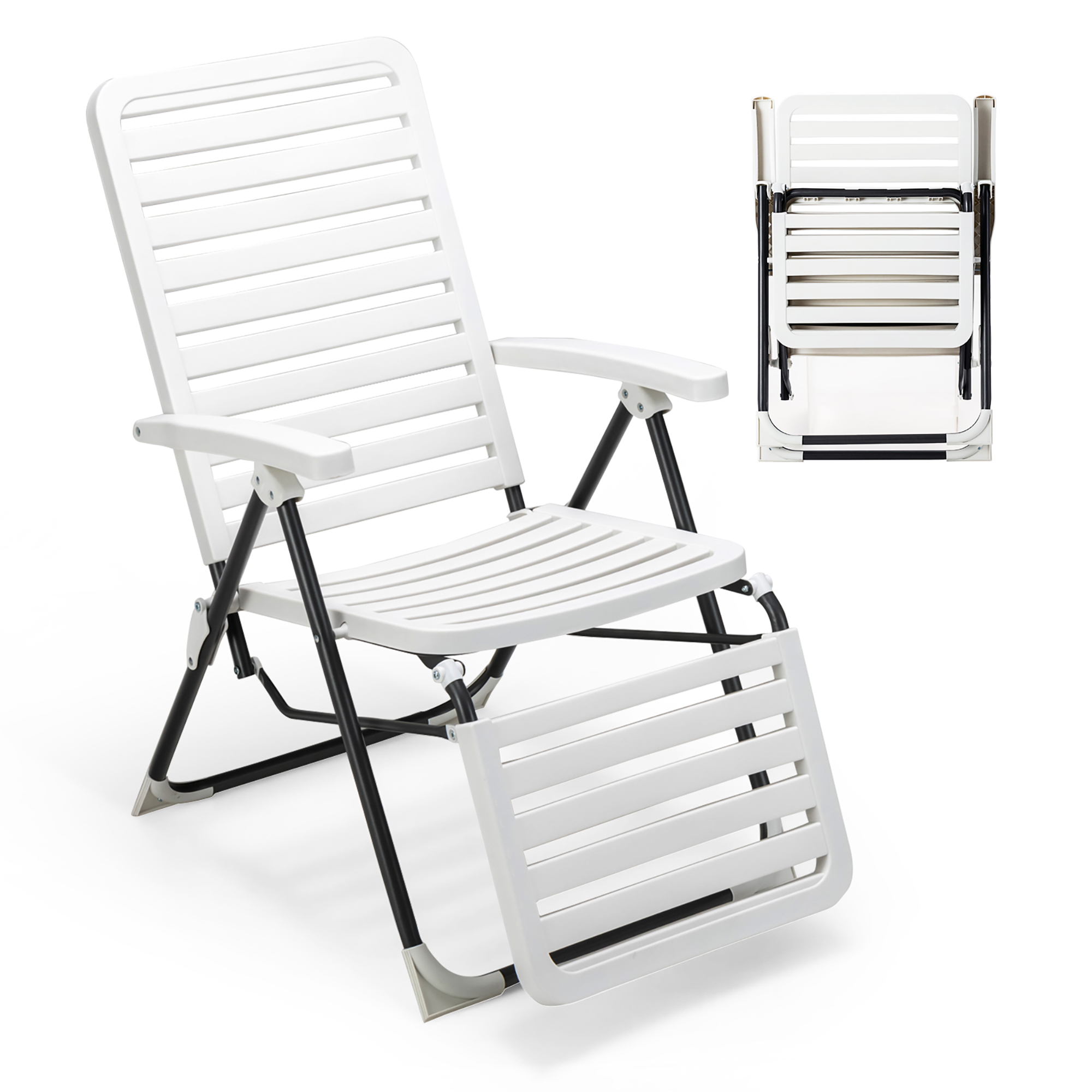 Costway Patio PP Chaise Lounge Folding Reclining Chair 7-Level Backrest Footrest White