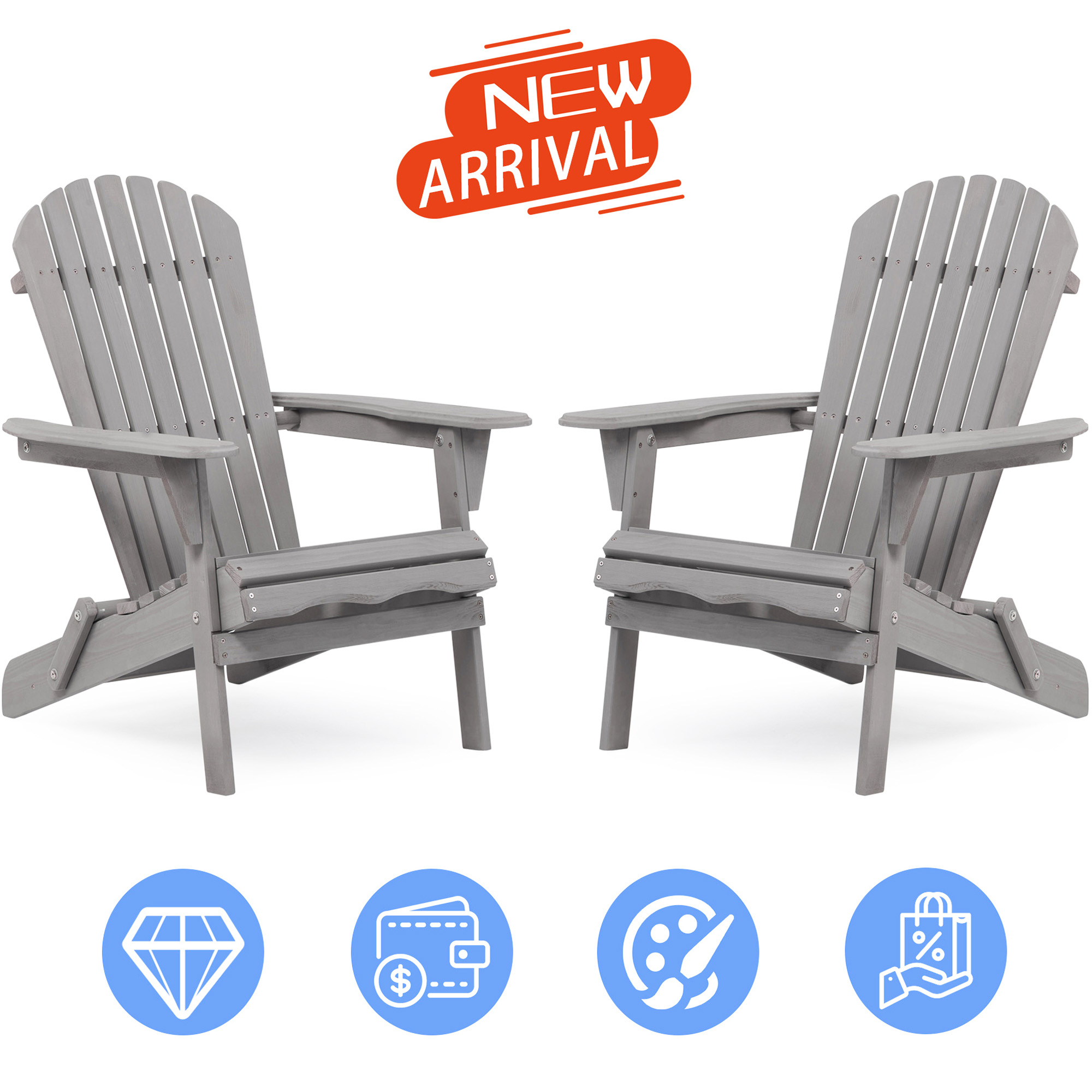 Outdoor Adirondack Chairs, Seizeen Wooden Folding Adirondack Chair Set of 2, Patio Furniture Set Lounge Chairs Quick Assembled, Elegant Outdoor Chairs Set for Deck Pool Yard Garden, Gray
