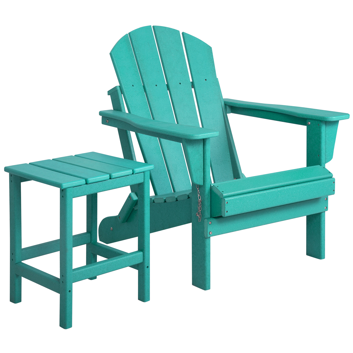 Adirondack Chair with Square Side Table Included for Outdoor Patio Garden Porch Seating, Turquoise
