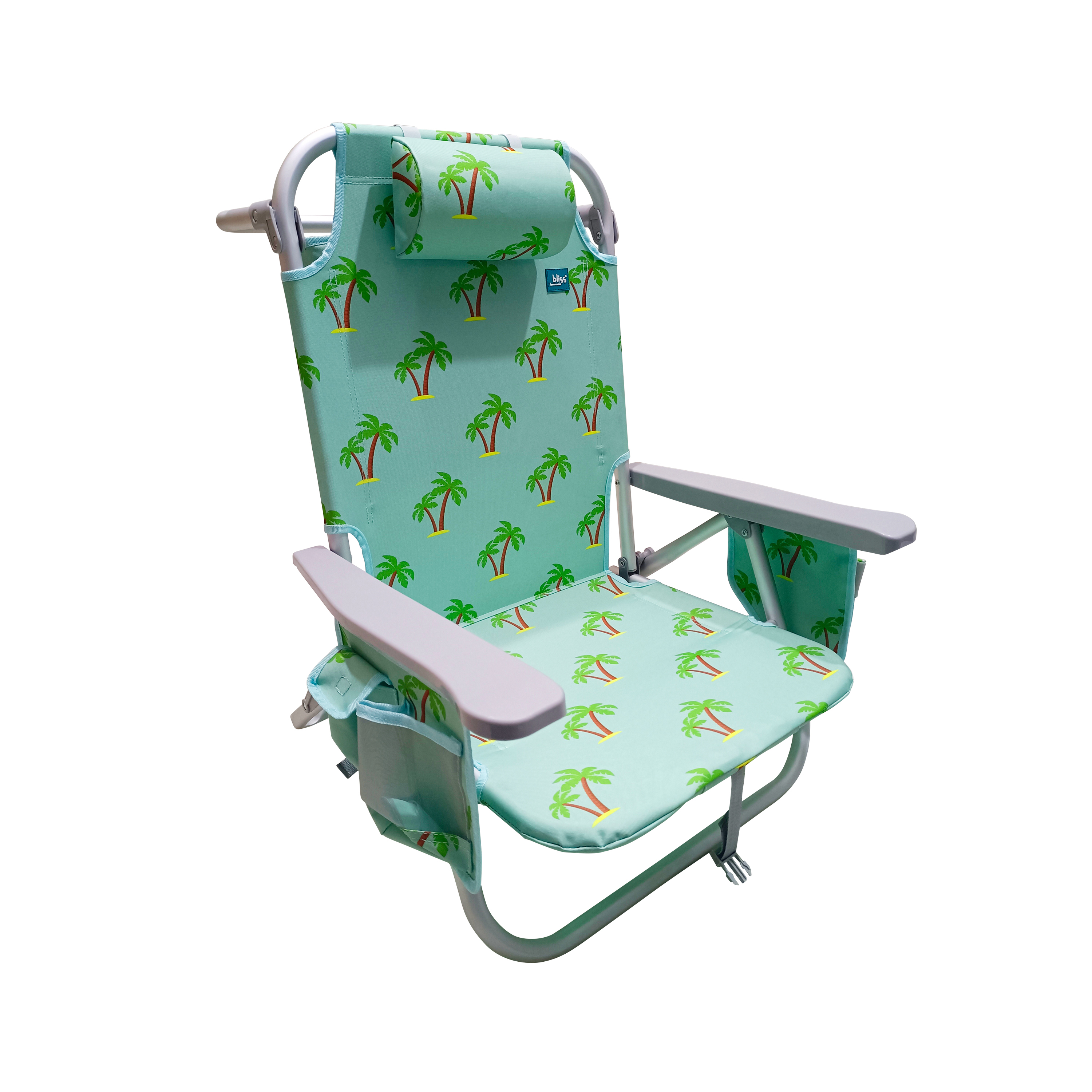 Bliss Hammocks Aluminum Beach Chair with Detachable Cooler Bag, 5 Reclining Positions, 275 lb. Capacity (Palm Tree)
