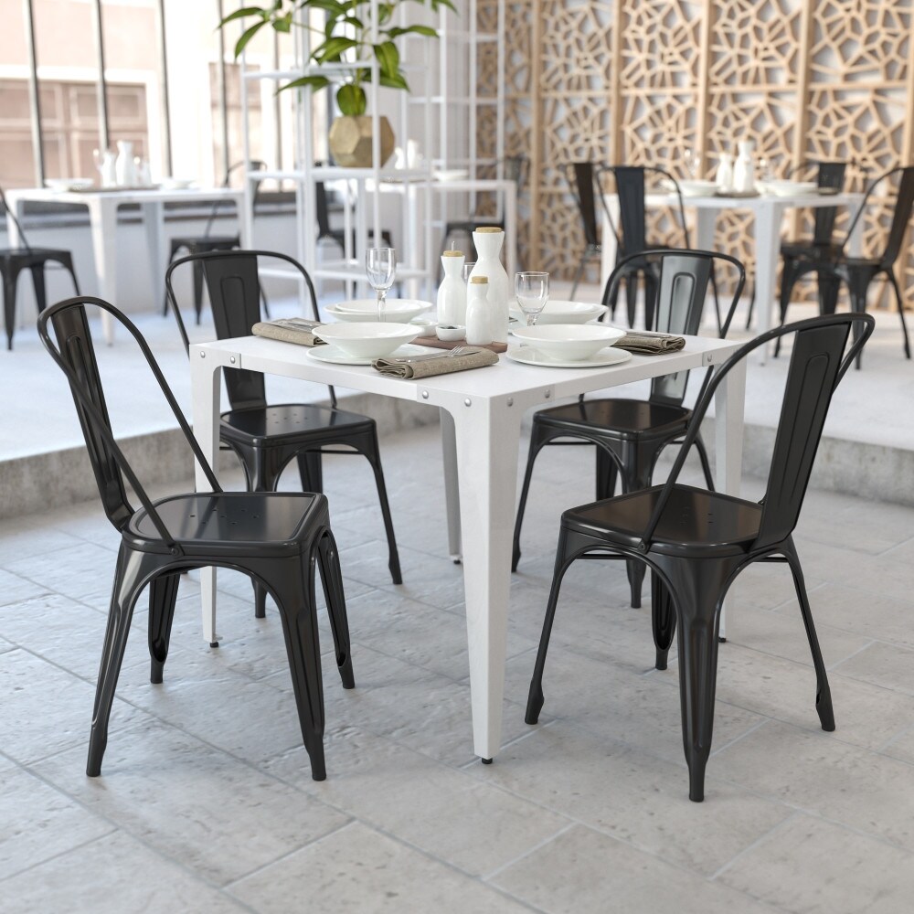 Flash Furniture Metal Indoor/ Outdoor Stackable Bistro Chair (Set of 4) Black