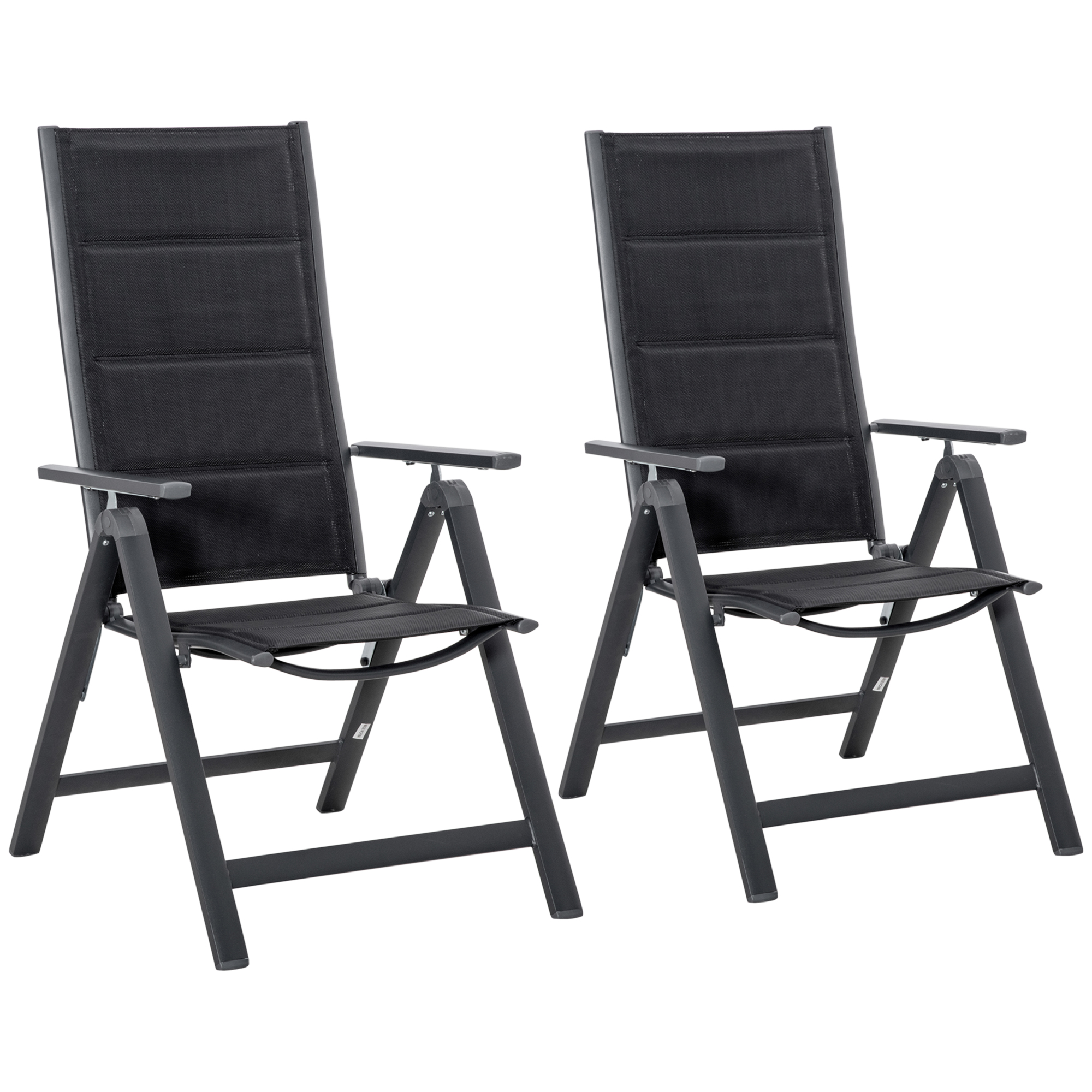 Outsunny 2 Piece Outdoor Patio Folding Chair Set, Aluminum Frame Portable Reclining Camping Seats with Soft Padding & Adjustable Backrest, for Garden, Outdoor, Backyard, Black