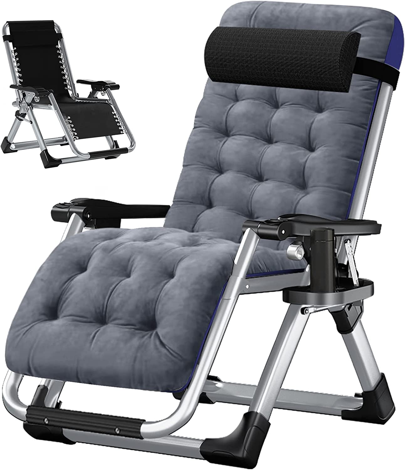 Slsy Zero Gravity Chair, Folding Reclining Chair with Cushion, Headrest and Cup Holder for Indoor and Outdoor, Support 440 LBS