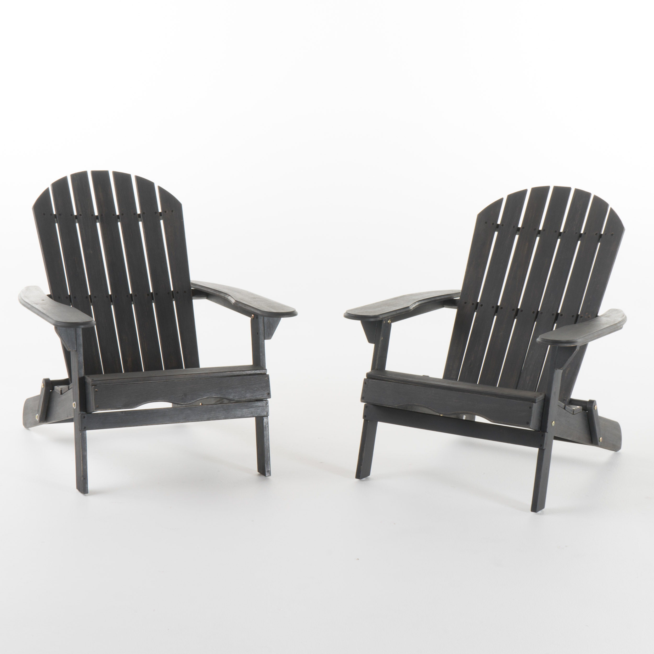 GDF Studio Hillary Outdoor Rustic Folding Adirondack Chair, Set of 2, Dark Gray