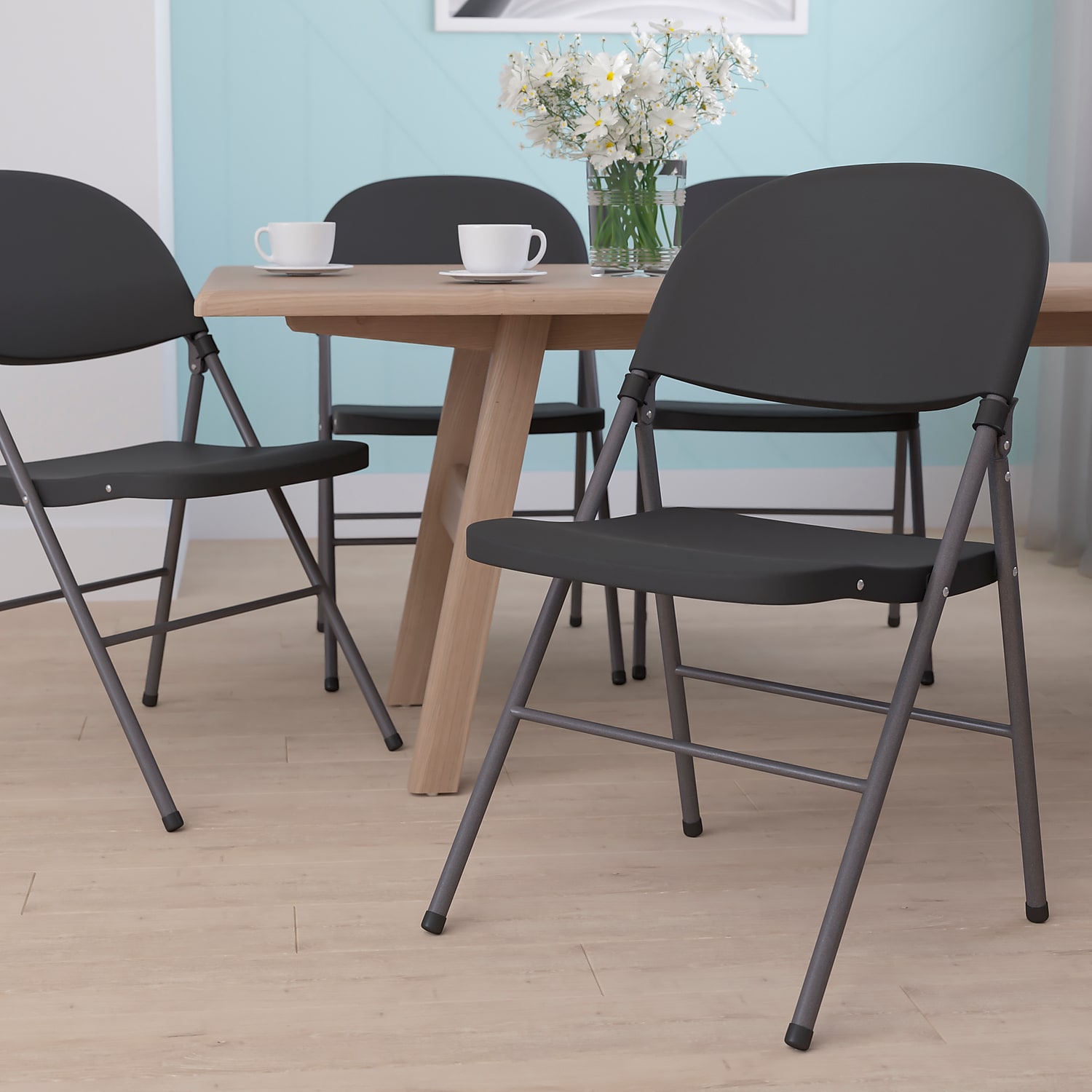 Flash Furniture Plastic Armless Folding Chair With Charcoal Frame Black 4/Pack 4DADYCD50