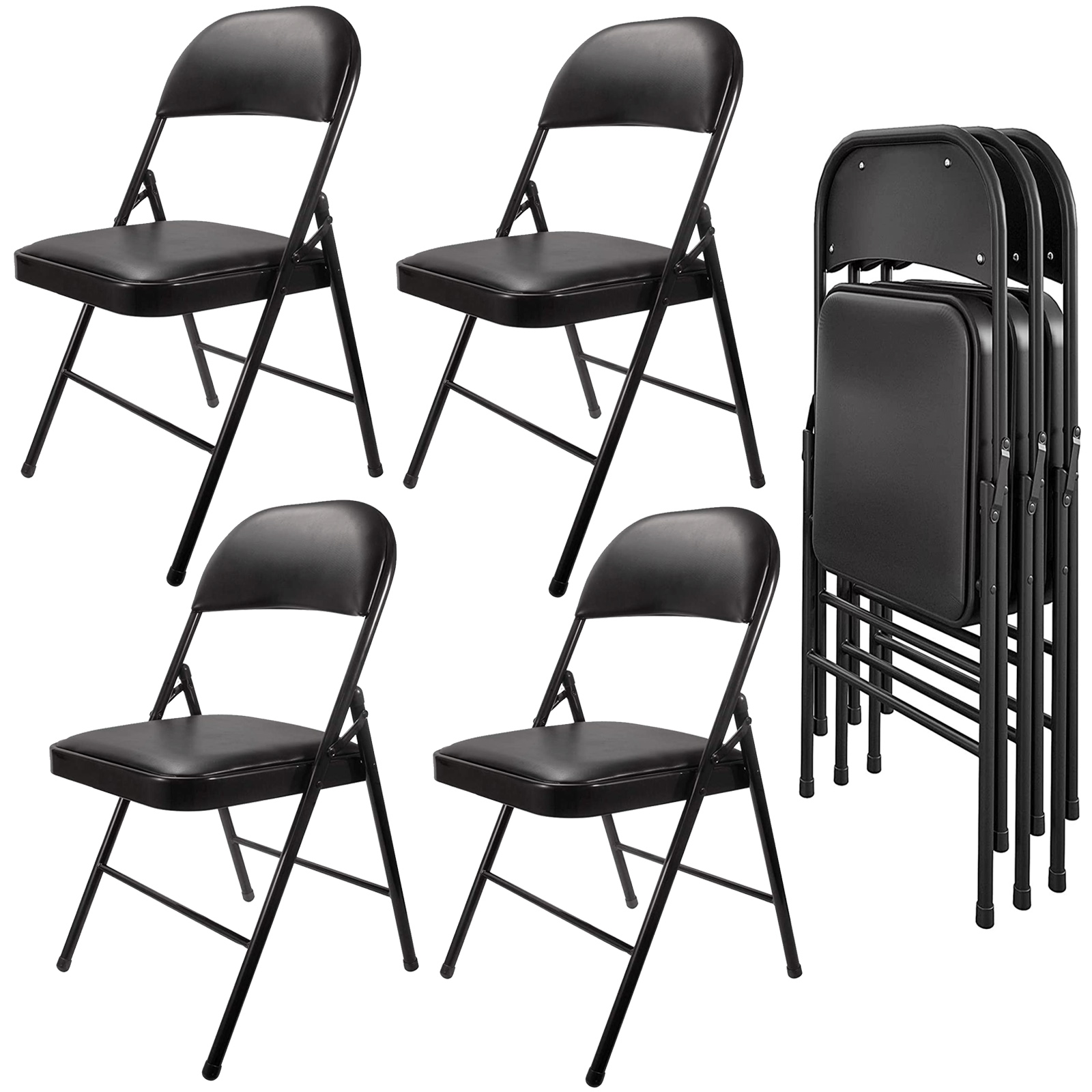 Inolait Padded Seat Metal Folding Chairs, 4 Pack, Black