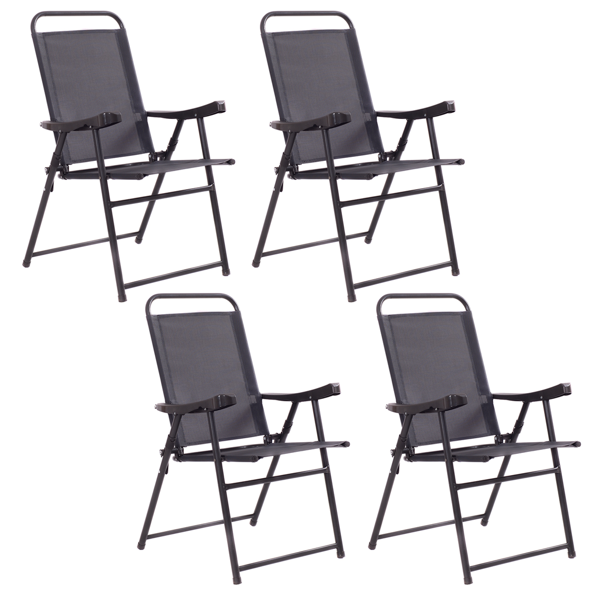 Patiojoy Folding Sling Chair Patio Furniture Set of 4 Armchairs Dark Grey