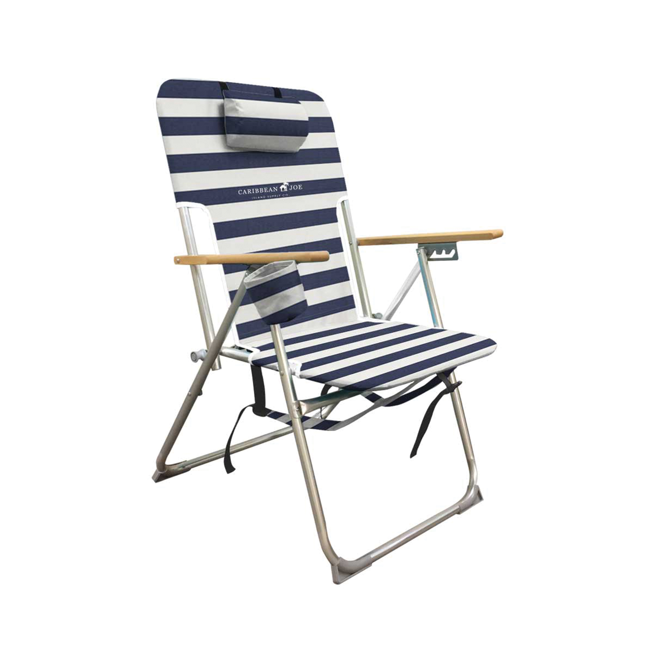 Caribbean Joe Backpack Wood Beach Chair - Blue and White