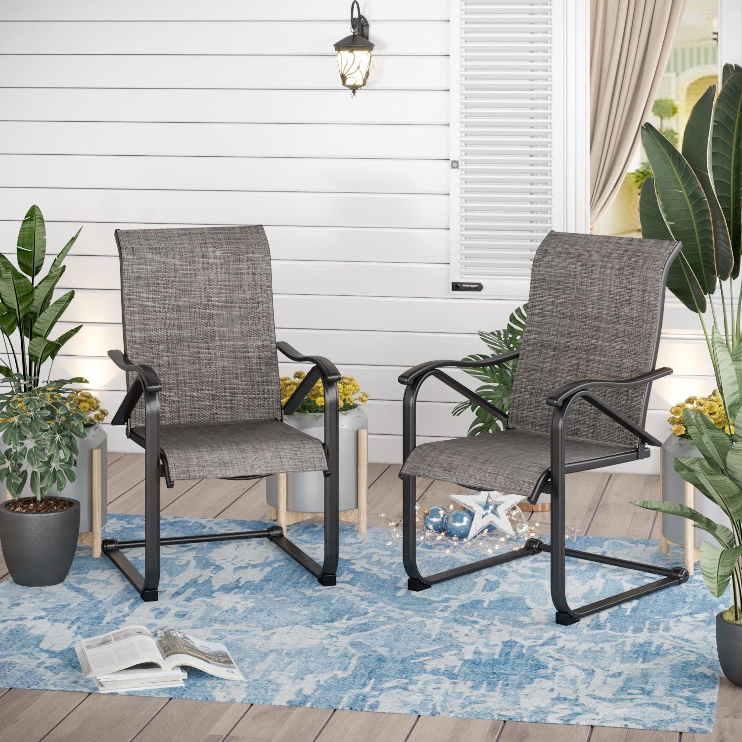 Sophia & William 2-Piece Patio Dining Chairs Steel Frame with E-coating - Gray