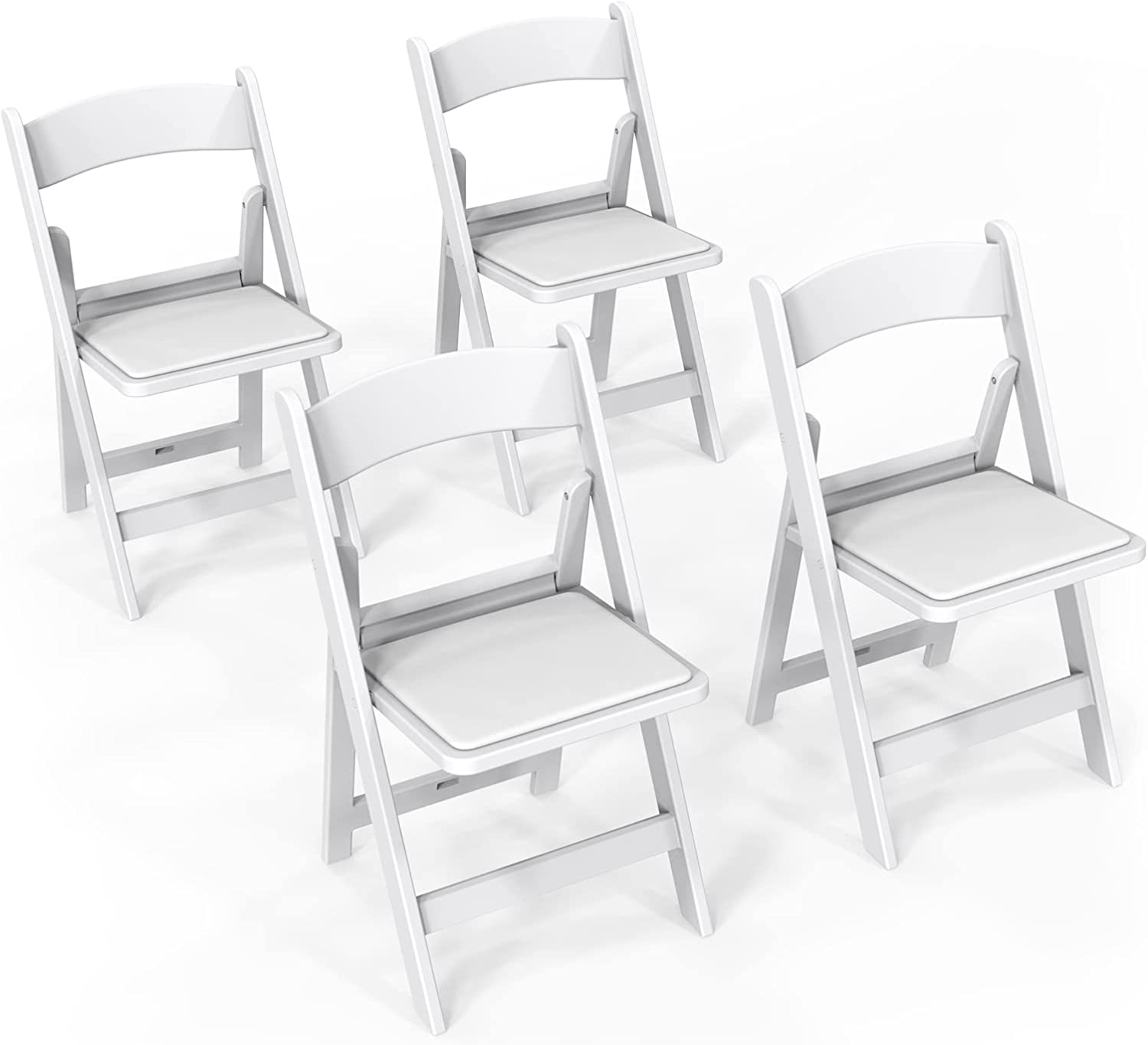 VINGLI White Resin Plastic Folding Chair with Padding Seat Weight Capacity to 350 lbs for Indoor Outdoor Use, 4 Pack
