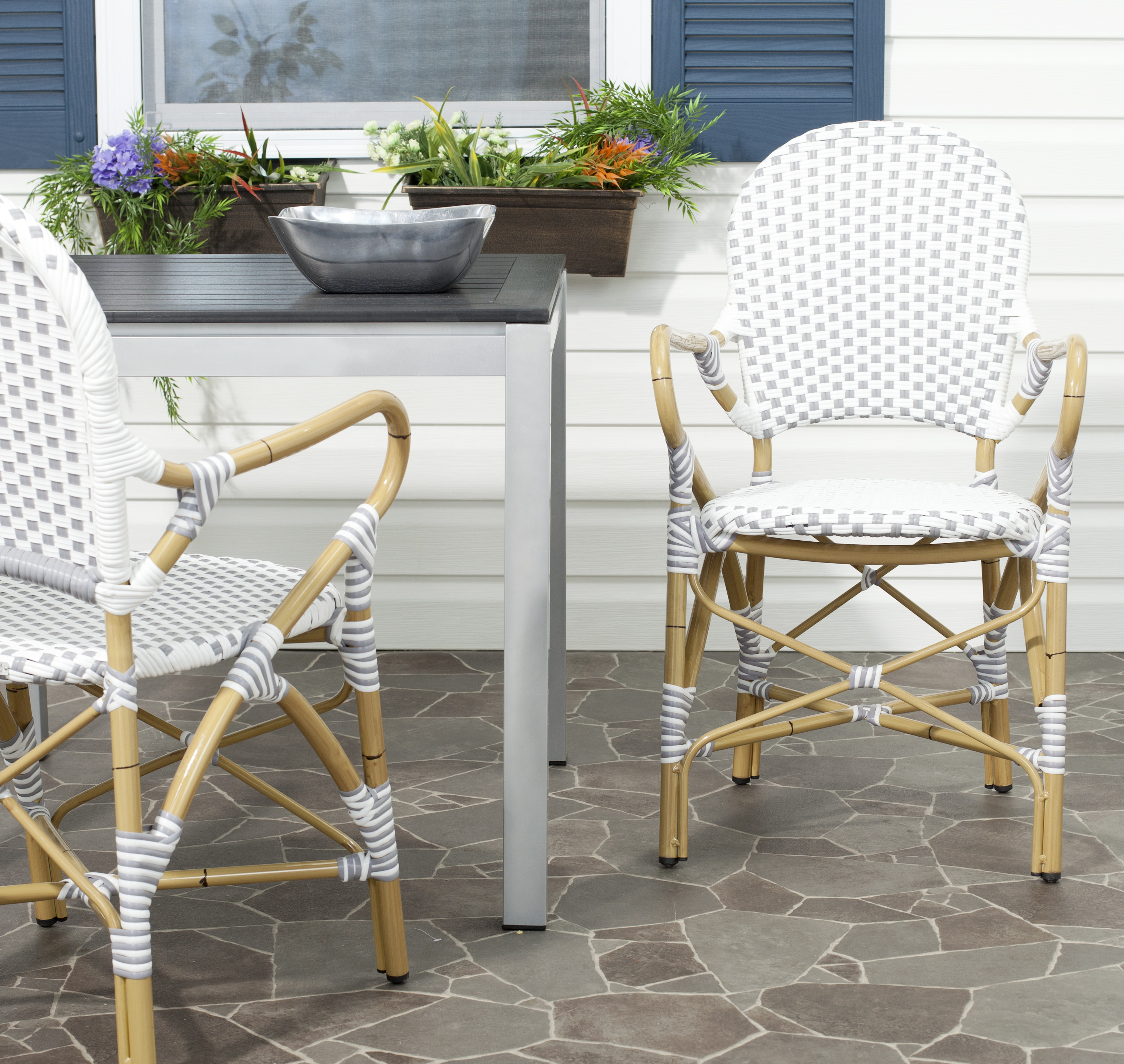 Safavieh Hooper Outdoor Stacking Arm Chair, Set of 2 - Grey/White