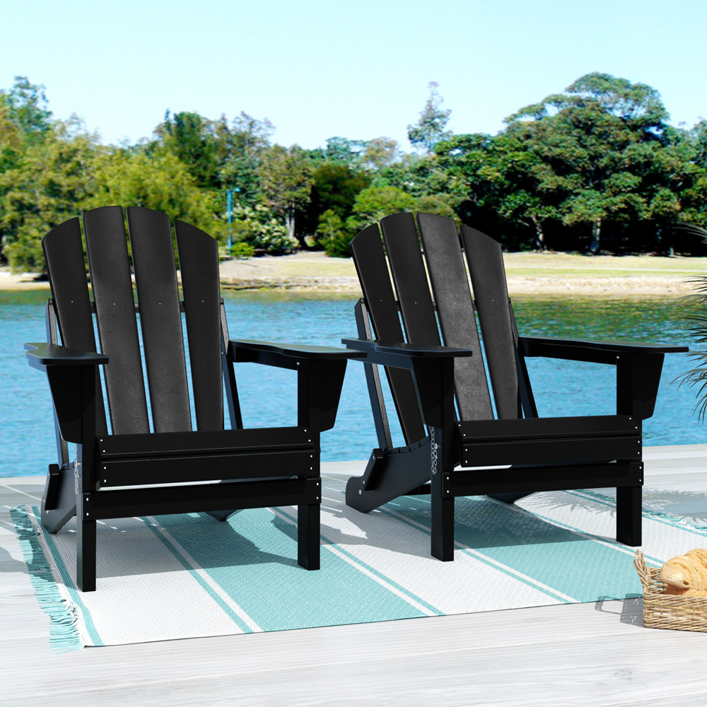 Westin Outdoor Braxton Folding Plastic Adirondack Chair - Black (Set of 2)