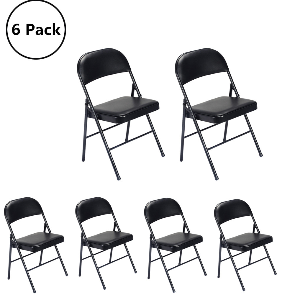 UBesGoo 6 Pack Folding Chairs Cushioned Padded Seat Wedding Chairs with Metal Frame Home Office Party Use Black