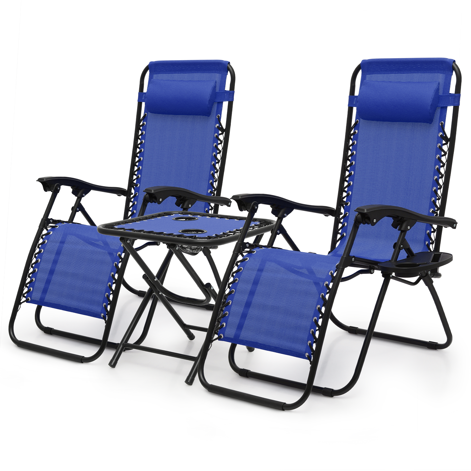 MoNiBloom Lounge Beach Chairs Set of 3 for Outside, Zero Gravity Camping Chairs with Side Table, Pillow and Tray, Blue