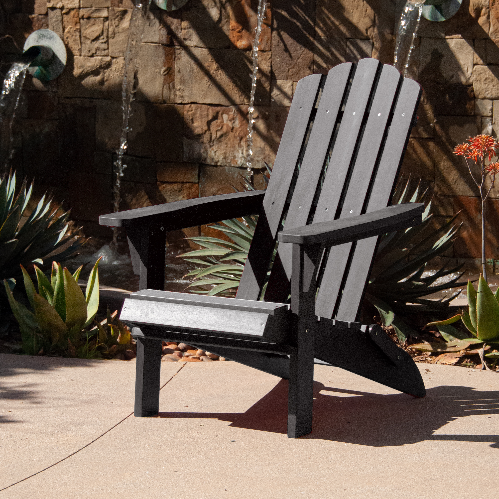 Outdoor Patio Folding HDPE Resin Adirondack Chair, Black