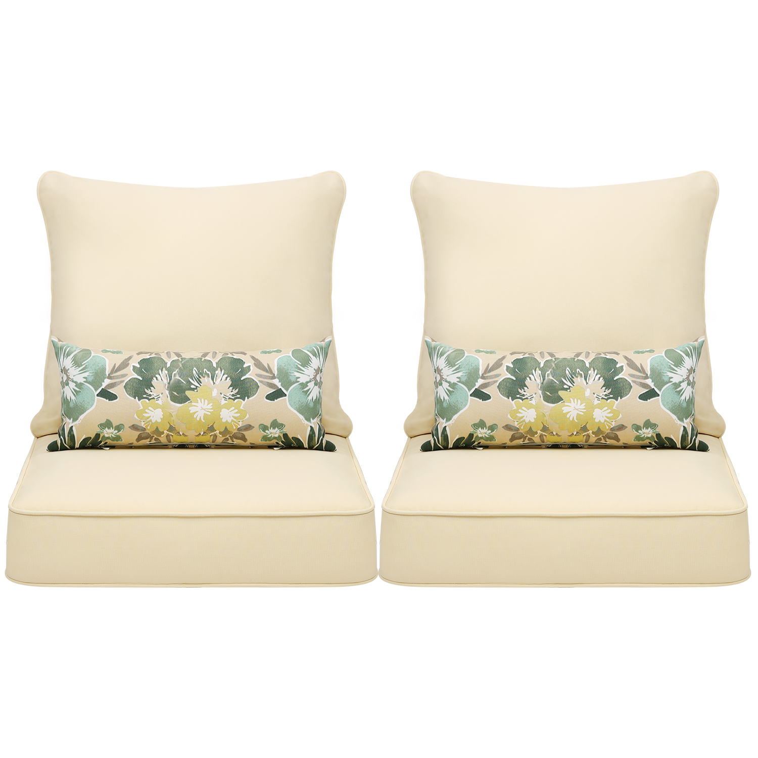 Aoodor 24'' x 24'' Outdoor Furniture Deep Seat Chair Cushion Set, Olefin Fabric Slipcover and Sponge Foam (Set of 2 Seats, 2 Backs, 2 Pillows)