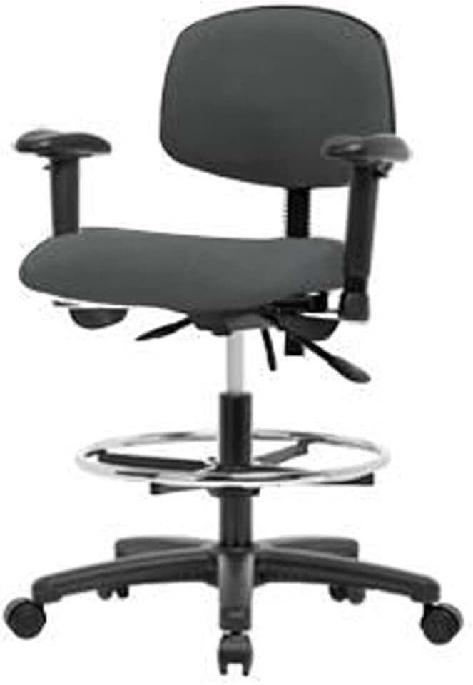 Thomas ECOM FMBCH-RG-T0-A1-CF-RC-F42 Fabric Medium Bench Height Chair with Black Nylon Base, Chrome Foot Ring Without Tilt, Adjustable Arms, Regular Casters, Black