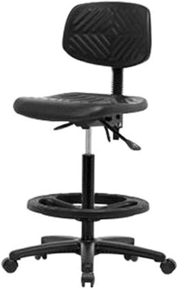 Thomas ECOM PHBCH-RG-T1-A1-BF-RC Polyurethane High Bench Height Chair with Black Nylon Base and Tilt, Adjustable Arm, Black Foot Ring, Casters