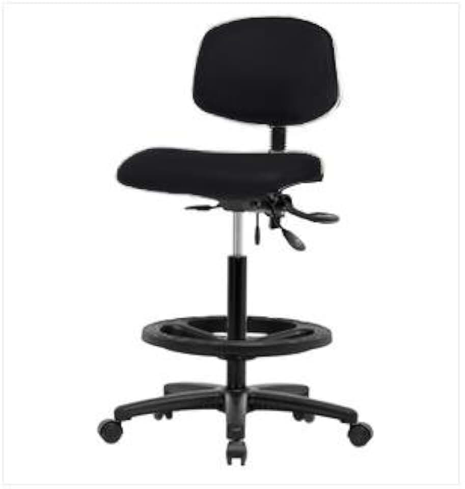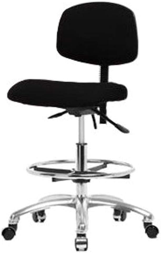 Thomas ECOM FMBCH-RG-T0-A1-CF-RG-F42 Fabric Medium Bench Height Chair with Black Nylon Base, Chrome Foot Ring Without Tilt, Adjustable Arms, Glides, Black