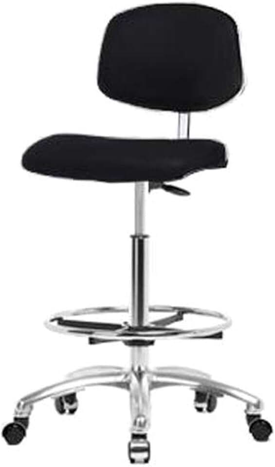 Thomas ECOM CLR-VHBCH-CR-CF-CC-c8605 Basic Clean Room Vinyl High Bench Height Chair with Chrome Base, Chrome Foot Ring, Chrome Casters, Gray
