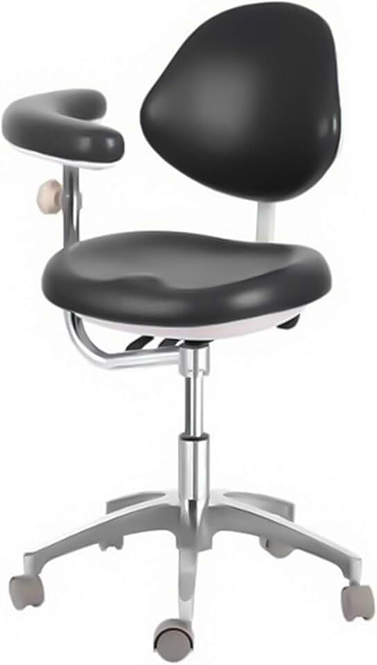Dental Adjustable Doctor's Stool Assistant Chair+360 Degree Rotation Armrest PU
